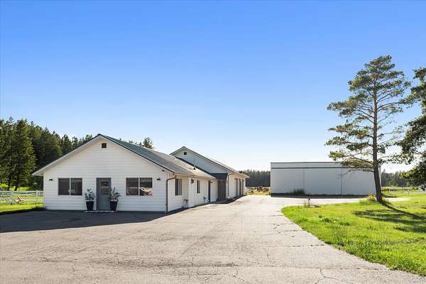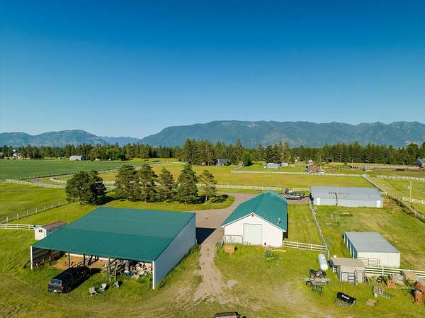 PRICE REDUCED! No zoning, no CCRs, no HOA! Freedom property! Sweeping views, rolling pasture and more outbuildings than you'll know what to do with. This 15.81 acre spread, just outside Whitefish is your Montana dream in the making. Main dwelling offers comfort, while the colossal, heated shop has four roll-up doors, bonus room, guest bedroom, and a half bath. Ready for RVs, projects, or guest overflow. Two additional massive shops expand the possibilities: one with full-height doors and machinery carports, the other insulated, powered, and built with dual drive-thru bays with FOUR roll-up doors. From Big Mountain to Glacier, the views are breathtaking. Add in a firepit, detached bar house (just far enough from the home), smoker bones (needs a stove), fencing, paved driveway, gated entry and more. Brimming with potential. Legacy property, commercial use, subdivide, etc. Yes, the four-legged foreman, Jeff the donkey, might just stick around to supervise future shenanigans.