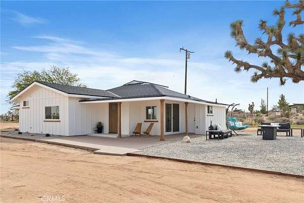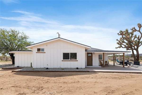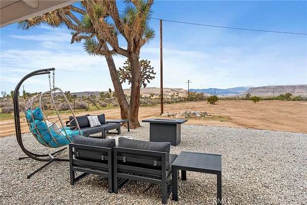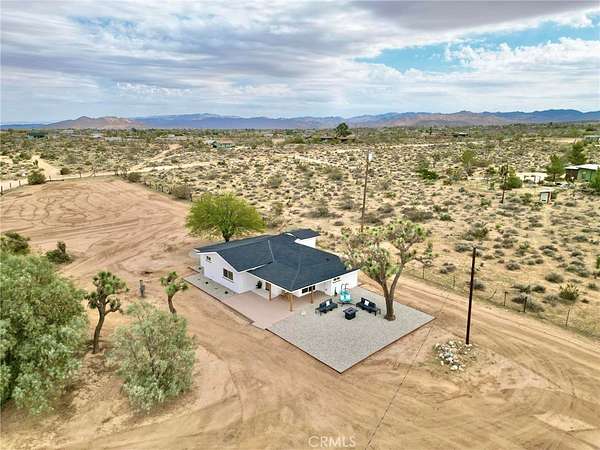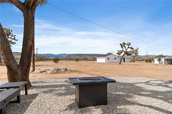 Welcome to 3398 Condalia Ave, a fully remodeled 3 Bed 2 Bath desert oasis on 3.65 acres of pristine, fully fenced land surrounded by beautiful Joshua trees and breathtaking mesa and sunset views. Located in the peaceful New Horizons area, this property offers the perfect blend of modern living and serene desert charm. Inside, every inch has been redone from the ground up -- featuring a brand-new kitchen, bathrooms, drywall, electrical, plumbing, HVAC, flooring, and roof. The bright and open layout includes 3 bedrooms and 2 bathrooms totaling approximately 1,458 sq. ft. of turn-key living space. You'll also find a separate laundry room and a large covered patio perfect for relaxing and taking in the Sand-to-Snow, Black Lava Butte, and Flat Top Mesa views. The property's huge 6-car garage/workshop, plus two additional storage/workshop units, provide endless space for projects, equipment, or creative pursuits. The graveled garden and open land are ideal for gatherings or future landscaping ideas. A private well sits on the property, while the home is conveniently connected to city water.