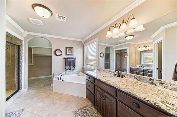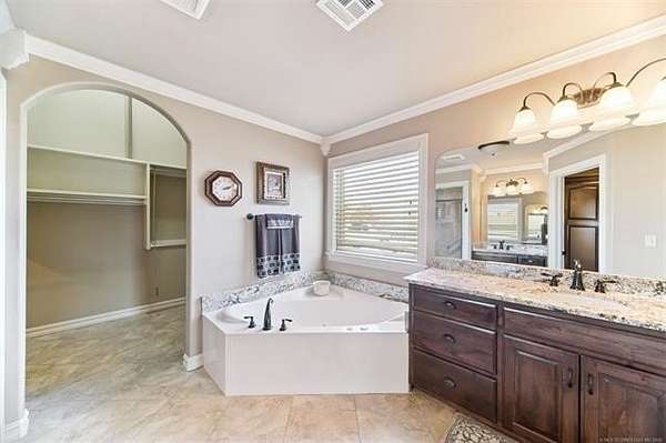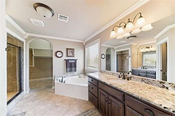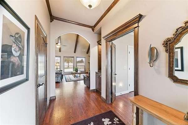 Set on 3.33 acres with quick access to HWY 169, this well-cared-for single-story home offers space, function, and flexibility. The split 4-bedroom layout includes a versatile fourth bedroom that works perfectly as a home office, guest space, or hobby room. Hardwood flooring, stained wood trim, and solid interior doors bring a classic, durable feel throughout the home. The kitchen is designed for both everyday living and entertaining, featuring an island, generous counter space, and a large walk-in pantry for added storage. A roomy laundry area provides additional functionality and organization. The primary suite offers a relaxing retreat with a whirlpool tub, separate freestanding shower, and double vanities. Outside, the property continues to impress with an attached 3-car garage plus two substantial shop buildings - a 52x30 shop with concrete floor and a second 26x18 shop (per appraisal). Whether you need space for equipment, projects, vehicles, or storage, this property provides the flexibility to make it work.