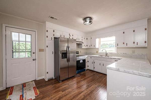 If you have ever ridden up Hwy 321 towards Granite Falls you may have noticed the "House on the Hill"! Located in the sweet little town of Hudson, NC, this brick ranch with a basement sits high atop Hwy 321 on the left. 3398 Shamrock Heights is a special find. House, barn and over two acres of land. This property is zoned H-B. Which means Highway-Business and has been for several years. It can be a residence as well. There is 325 feet of road frontage on Hwy 321. Home has a new roof, new paint inside and out. New stainless-steel appliances in the kitchen. And the original hardwood floors have been shined up! Home is ready to move into! Oversized carport is perfect for parking and/or hanging lights and having a cool outdoor space to entertain. 3398 shares a driveway with the neighbor and there is a Shared Driveway Agreement on file with Caldwell County. Hudson, NC is centrally located between Hickory and Lenoir, at the foothills of the Blue Ridge Mountains. A growing community with new shops and restaurants. Come take a look. You may just like it!