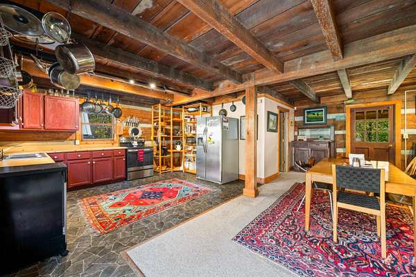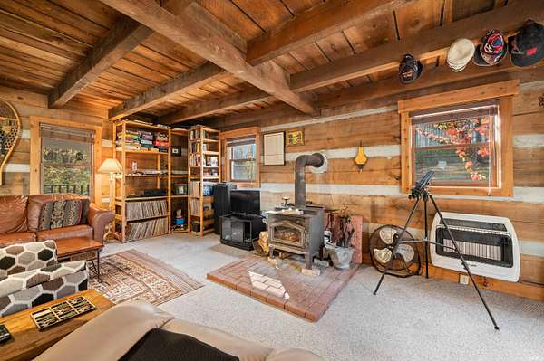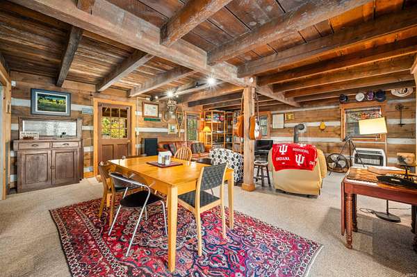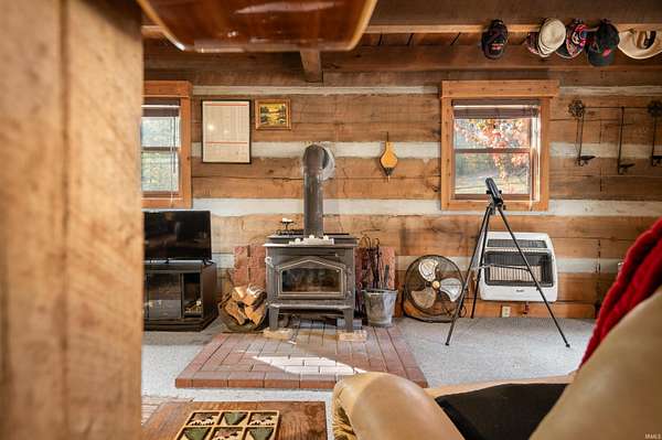 Welcome to Cottonwood Cabin Vacation Rental! Highly functional, utilitarian rustic cabin Amish-built, from a Helmsburg Sawmill design and lumber situated on 16 rolling acres. County approved Short Term Vacation Rental for 10+ years, the current owner has had this property since 2000 and made it a unique, and comfortable escape. It's ready for your inspired continuation of its journey. Located on a corner lot with frontage on two different roads, the plot allows for a separate drive and development site on gorgeous cleared back acreage if desired. Large two story 30x40 pole barn and five amish style out buildings - chicken coop, manger, outhouse, canning shed plus a back structure. A small pond and a couple of sites available for a much larger pond. Property has not been timbered in 25+ years. The wood stove, back deck and killer front porch are just a few reasons to fall in love with this Brown County Log Cabin.
