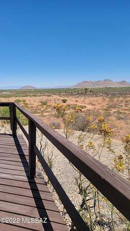 This immaculate two-story hillside cabin sits on 10 acres and offers breathtaking views of the Chiricahua Mountains and Sulphur Springs Valley. The main home features 2 bedrooms, 1 bathroom, a welcoming living area, a kitchen, and a laundry space, plus a separate entry office and a screened porch. Recent improvements include all-new windows and doors, updated bathroom fixtures, a new well pump and pressure tank, new cooling and heating units, a new roof and siding, and an entire repaint. A new foundation was poured, adding lasting value. Step outside to a wraparound deck perfect for stargazing-set up your telescope and enjoy unparalleled night
