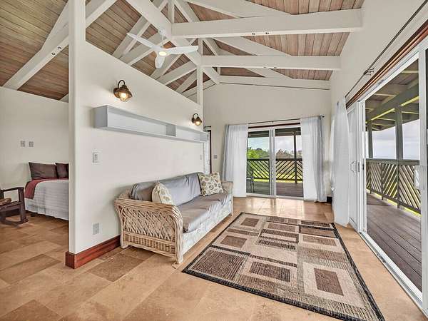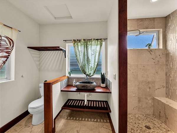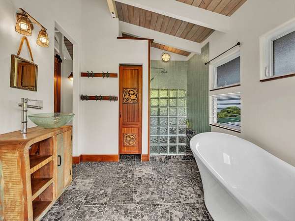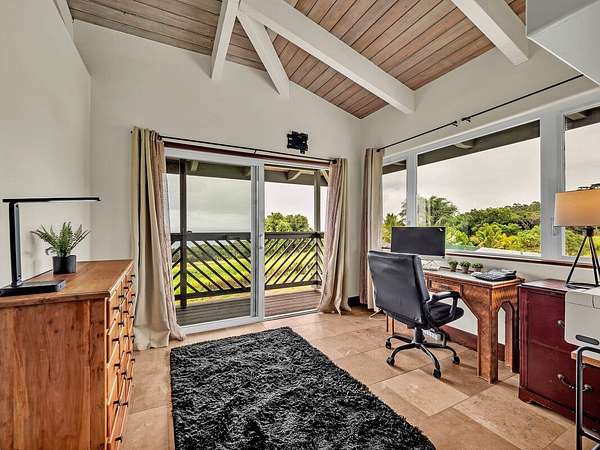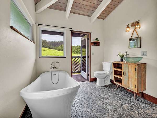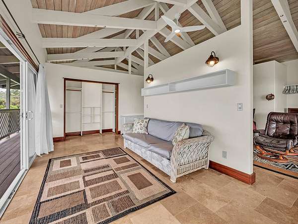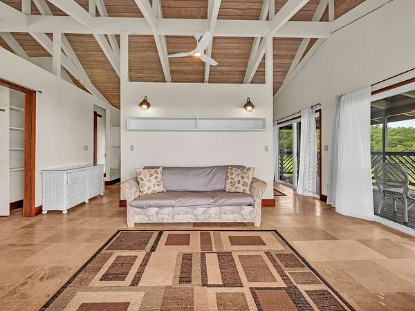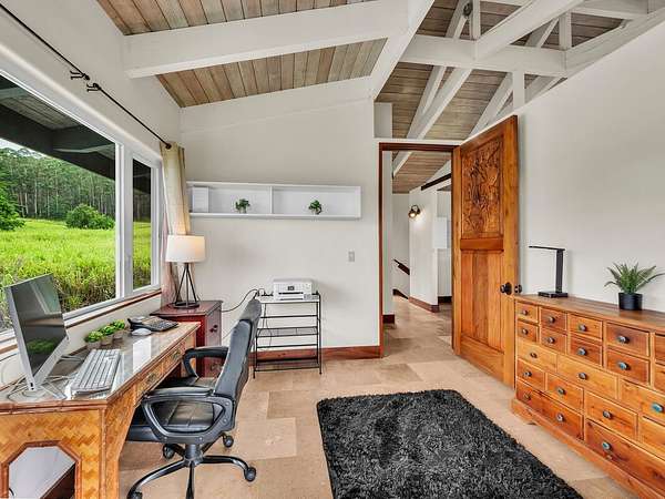 Discover your dream retreat located along Hawai'i Island's Hamakua Coast. This unique two-story, off-grid home is nestled between two streams. A little over 17 acres, this property boasts expansive ocean views and a gentle sloping pastoral setting, making it an idyllic country estate. Cleared and partially fenced, it's a perfect place for those seeking extra space to farm, raise animals, or just enjoy a rural lifestyle. Power is supplied by a 30-panel photovoltaic system while four 4,000 gallon water catchment tanks with a filtration system supply water to the home. Fruit trees such as mango, avocado, a variety of citrus, coconuts, macadamia, and bananas provide your own supply of seasonal fruits. The home's custom finishes were really thought out. Ornate interior doors, each with a different design, can be appreciated and admired throughout. The lower level consists of a bedroom, a bathroom with a walk-in shower, a utility room with a sink, and a walk-in pantry. The spacious kitchen has beautiful cabinetry, ample counter space and large windows, allowing you to enjoy the ocean views. A lanai off the kitchen provides added space to relax or dine outdoors. A large carport provides covered parking or can be utilized as a workshop or a perfect area for gatherings. Upstairs, you will find another room, also with ocean views, a spacious bathroom with a freestanding tub, walk-in shower, and its own little balcony with forest views. The living area opens to a large deck, making it a perfect place to unwind while taking in the peaceful scenery and tropical breezes. The property has easy access to Highway 19 but is set back enough to afford privacy. Located approximately 20.5 miles north of Hilo, you will enjoy the Hamakua scenery as you drive along the coastline. Whether you're looking to start your own farm or simply want to enjoy the beauty and rich history of the Hamakua Coast, this property offers many possibilities.