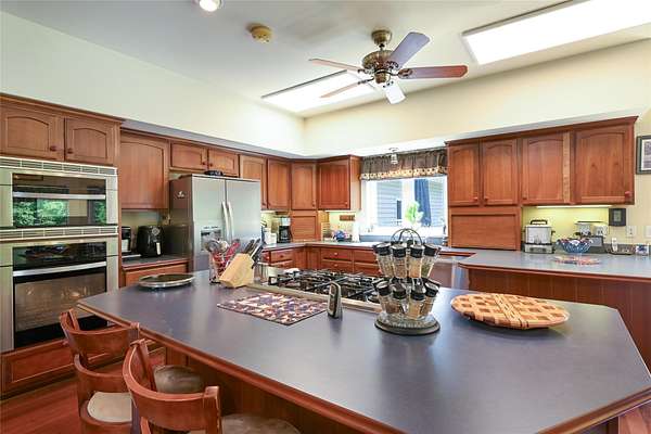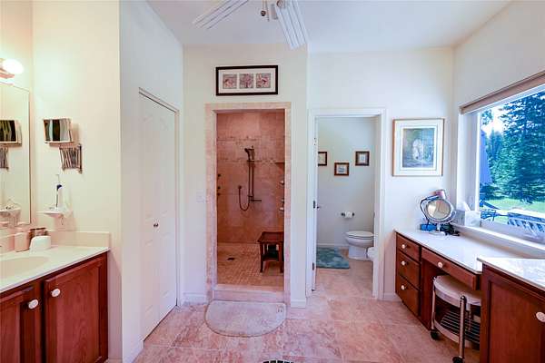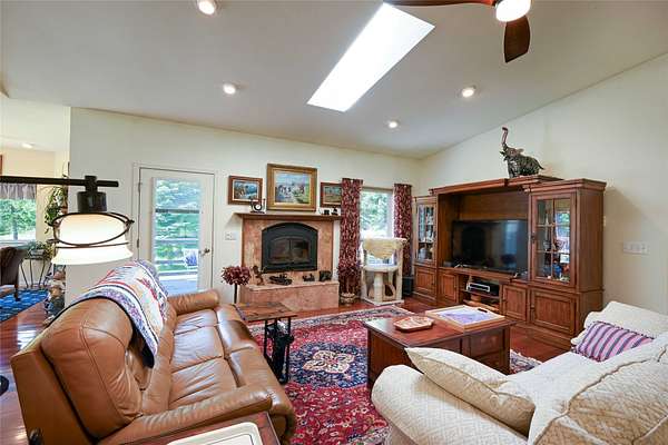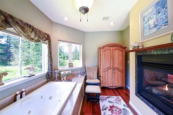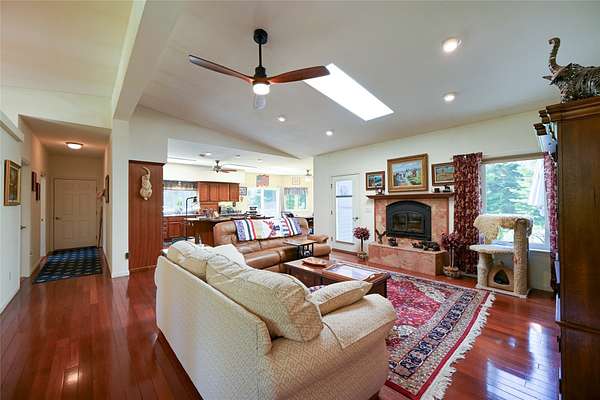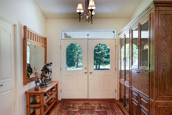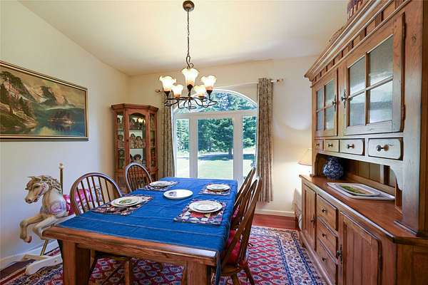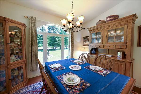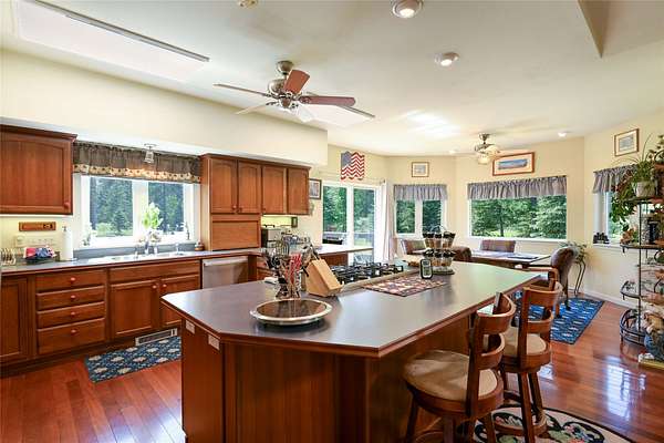 Located halfway between Trout Creek and Thompson Falls, this stunning, level, 20-acre parcel is covered in a variety of trees with a small pond, 30 gpm well, & fiber optic internet, featuring a beautiful 4544 sq ft custom home & a 1408 sq ft guest cabin. The beautiful main home has an open floor plan with vaulted ceilings and gorgeous Brazilian Cherry hard wood floors and custom tile. The impressive kitchen is ready for the discerning gourmet chef, equipped with a gas cooktop, electric range, with pop up vent, a warming drawer, large island, and custom cherry cabinets. There is an informal dining area off the kitchen and a separate formal dining room. The primary bedroom is on the main level, and it is a real showstopper, including a double-faced gas fireplace, large walk-in tile shower, heated floors, jacuzzi tub, deck access, and walk-in closet. Also on the main level is a guest bedroom, full bathroom, 3/4 bathroom with laundry & an attached double car garage. The walk out basement has a wine cellar, tile floors, wood stove, a living room, exterior access for wood, and tons of storage. The guest cabin has a kitchen, living room, dining room and unfinished bathroom on the main level. The kitchen includes all of the appliances, including the wood cook stove. Two bedrooms are upstairs, providing plenty of room for guests. The main home has a 30 gpm well and an older shallow well is at the cabin that can be used for irrigation. No detail was overlooked in the main home including high end appliances, security cameras, R-60 insulation in the walls and ceilings, 2x6 walls with foam insulation, and multiple heat sources. The basement has a wood fireplace with a firewood room and 5-6 cords of wood left with the property. The bathroom has electric in floor heat and a gas double fireplace. Each zone of the home has electric heaters with their own thermostats. This property is teeming with wildlife including ducks, geese, turkeys, deer, and even an occasional elk or moose!