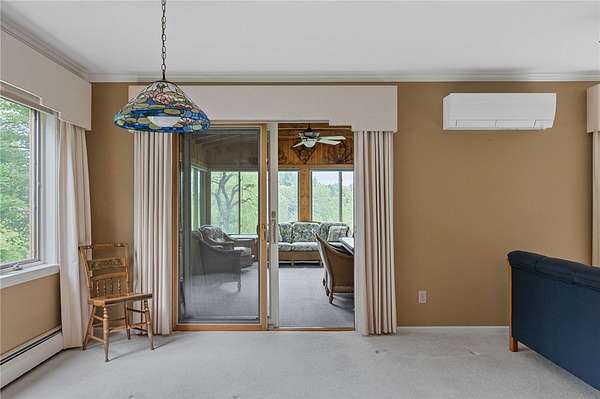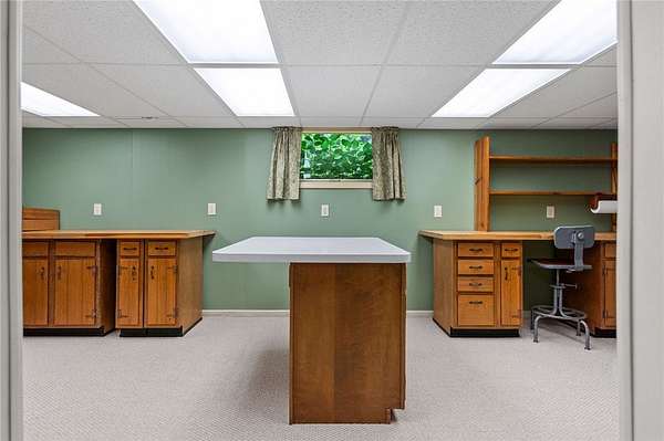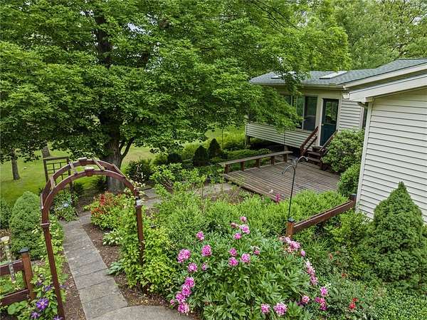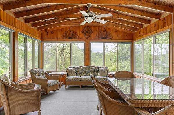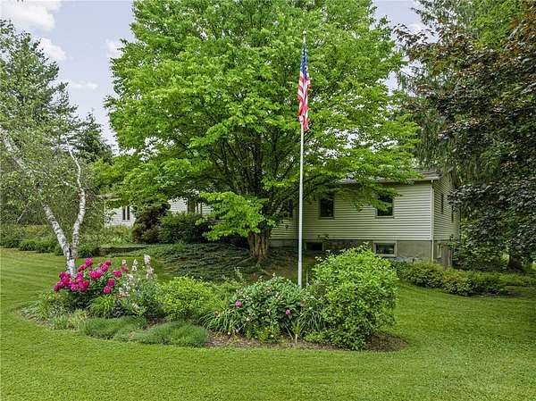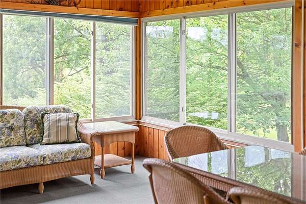 Tucked away on a secluded lot, this beautifully landscaped ranch home offers privacy, space, and charm-making it a top choice for buyers. The main level features a welcoming spacious living room with a cozy gas fireplace, a formal dining room, a family room and an updated kitchen. A stunning sunroom opens to a spacious deck with serene views of the backyard-perfect for relaxing or entertaining. The primary suite includes a full en suite bath, while two additional bedrooms and a second full bath provide ample space for family or guests. A convenient laundry room with a utility sink completes the main floor, which boasts a tasteful mix of carpeting, hardwood, and luxury vinyl flooring throughout. The fully finished lower level offers 1054 sq ft of finished space, including a versatile family/rec room with built-ins and under-stair storage, a full bath, two additional rooms ideal for bedrooms or home offices, a dedicated craft room, a large storage area, and a utility room-with the added bonus of exterior walkout access. Additional features include an attached 2-car garage with attic crawl space and a detached 30 x 36 pole barn, perfect for extra storage, workshop space, or hobby use. This is your opportunity to own a peaceful retreat with all the comforts of home.