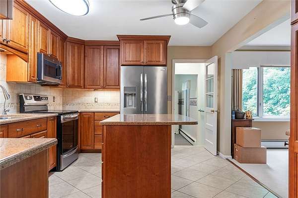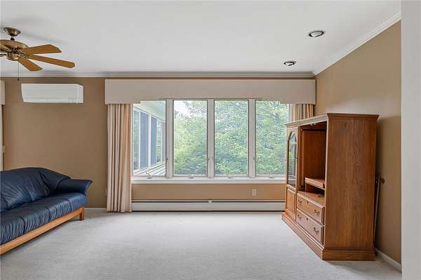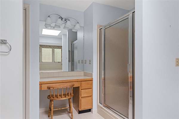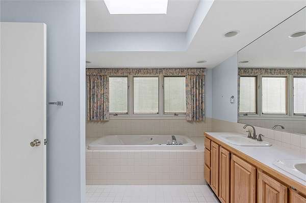 - Cedar Closets, Ceiling Fans, Eat In Kitchen, Entrance Foyer, Jetted Tub, Kitchen Family Room Combo, Kitchen Island, Living Dining Room, Natural Woodwork, Quartz Counters, Separate Formal Dining Room, Skylights, Sliding Glass Doors, Window Treatments