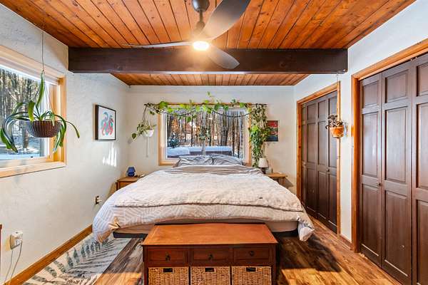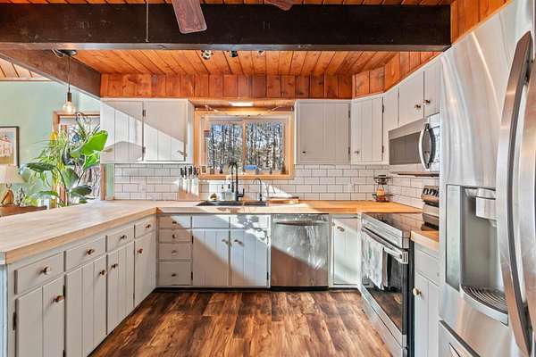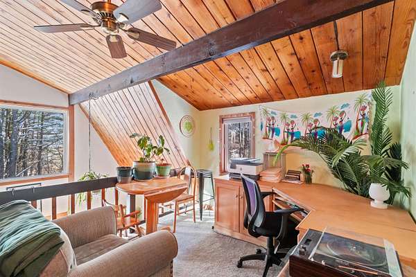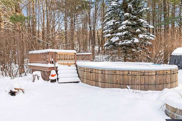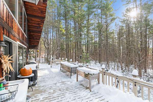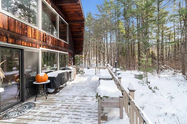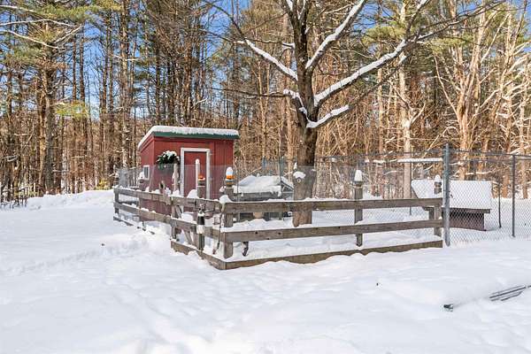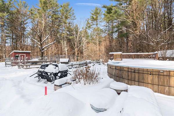 What a retreat! Live the good life in the heart of Vermont with this amazing country home! Step into a dream as you walk inside to be greeted by massive new windows that immerse the living room with natural light. This beautiful home comes with a brand new kitchen renovation including new appliances, butcher block countertops, new sink, plumbing, and new tile backsplash. Featuring new flooring throughout that compliments the massive stone hearth with a gas stove. Relax with the view from an expansive wrap around deck to enjoy the serenity of the woods around you. The primary bedroom with private bath are conveniently located on the first floor. Walk up the open stairs to the bonus room loft which is perfect for a home office. Two additional separate bedrooms and bathroom complete the second level. The basement features a large roaring fire place for those winter nights with plenty of natural light from the walk out sliding glass doors. There is a large amount of storage as well for all of your family needs. The yard has been meticulously landscaped with perennial gardens, a blue stone patio, fire pit, an outdoor above ground pool, a fenced in dog area, chicken coop, and a large shed. The common land contains an amazing walking trail system. A quick drive to the Essex outlets featuring a variety of shops and restaurants. Enjoy the privacy of the woods while close to everything.