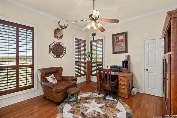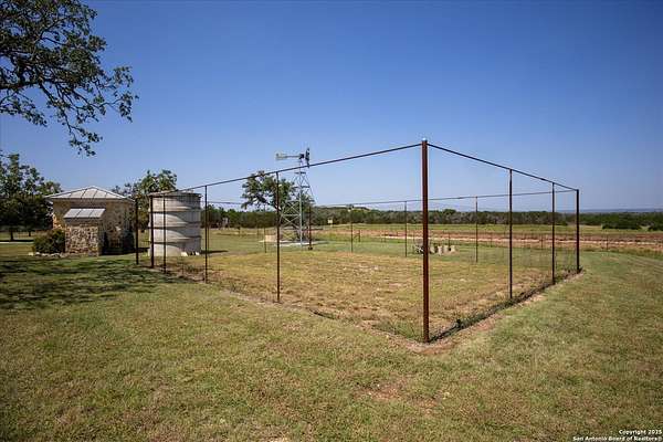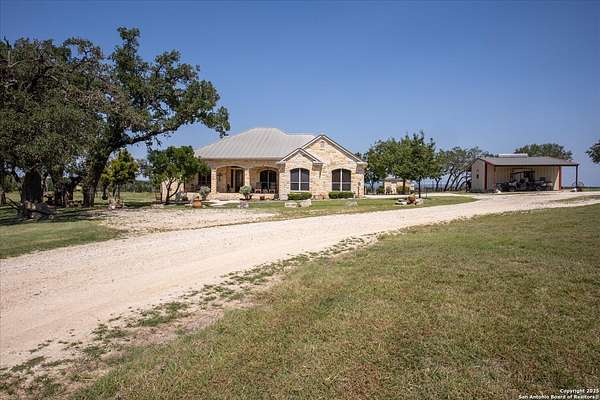 Located approximately 10 minutes from downtown Boerne, this well-maintained Texas Hill Country ranchette offers privacy, functionality, and flexibility for buyers seeking unrestricted Ag-Exempt space for agricultural use, animals, or equipment while remaining close to daily conveniences. The Katzer custom-built one-story home features a no-step design for ease of access and has been thoughtfully maintained. Inside you'll find a rock surround fireplace, wood flooring, open kitchen design with plenty of cabinetry for storage and island for all the kitchen prep. The primary bedroom is separated from the other bedrooms. Additional features include wood plantation shutters, gas stub out in kitchen for gas cooktop, spray foam insulation and metal roof are all added benefits of this home. The outdoor entertaining area and firepit create an inviting setting to enjoy peaceful Hill Country evenings and gatherings. The property is fenced and cross-fenced, providing a practical setup for livestock, 4H projects, or other agricultural interests. Three large barns offer generous storage for hay, equipment, or animals, supporting a wide range of rural lifestyle needs. A separate workshop is already plumbed with a bathroom and offers potential for conversion into a guest house, additional living space, office, or hobby area. An RV hookup adds convenience for your RV! This property presents an opportunity for buyers seeking a private country setting with usable land and low taxes while maintaining close proximity to Boerne's shopping and dining. Don't wait, your ranchette is waiting for you!