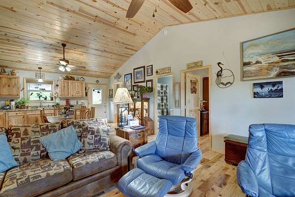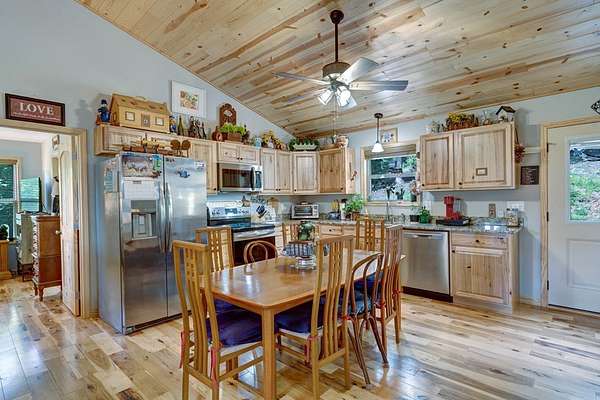 Beautiful cabin on almost 2 acres located in Nelson Ridge is just what you are looking for. This beautiful 2 bedroom/2 bathroom cabin has an open floor plan with vaulted wood ceilings and beautiful hickory wood floors. The eat in kitchen has stainless steel appliances, granite countertops and plenty of cabinet space. A spacious laundry room with custom made pantry is located off the kitchen. The gleaming wood floors and beautiful wood ceiling complement the Great Room and make it a cozy space to spend time in front of the gas fireplace on those cool mountain evenings. The flow from Great Room onto the spacious deck provides an extension of living space with the beautiful mountain view as a backdrop. The Master Bedroom with ensuite bathroom and spacious closet also provides a beautiful view of the mountains. A second bedroom is located on the opposite side of the house for added privacy for guests or family. Since purchasing the cabin the owners have expanded the back deck to 16' x 40', put in a whole house water filtration system which monitors water pressure, fenced in the back yard making it a perfect spot for children or pets, added a new shower door and custom made cabinets in the master bathroom. A single 14' x 28' detached garage building has been added, the large crawl space has a shelving system that provides lots of storage space and plenty of room for organizing tools and yard implements. New well in 2024 (5 households on well). Come see this remarkable property and make it your primary home, a mountain getaway or as an investment property.