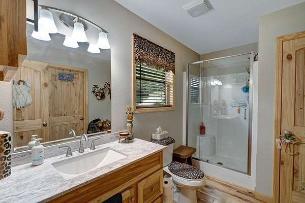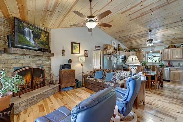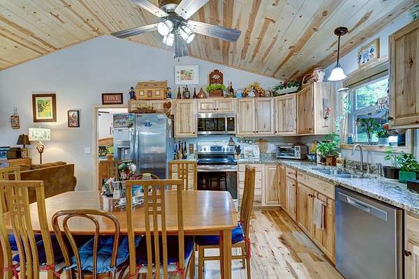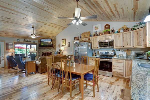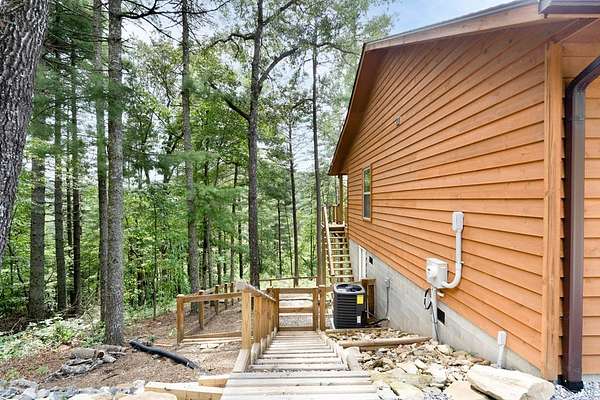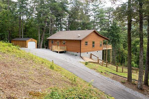 Beautiful cabin on almost 2 acres located in Nelsons Ridge is just what you are looking for. This beautiful 2 bedroom/2 bathroom cabin has an open floor plan with vaulted wood ceilings and beautiful hickory wood floors. The eat in kitchen has stainless steel appliances, granite countertops and plenty of cabinet space. A spacious laundry room with custom made pantry is located off the kitchen. The gleaming wood floors and beautiful wood ceiling complement the Great Room and make it a cozy space to spend time in front of the gas fireplace on those cool mountain evenings. The flow from Great Room onto the spacious deck provides an extension of living space with the beautiful mountain view as a backdrop. The Master Bedroom with ensuite bathroom and spacious closet also provides a beautiful view of the mountains. A second bedroom is located on the opposite side of the house for added privacy for guests or family. Since purchasing the cabin the owners have expanded the back deck to 16' x 40', put in a whole house water filtration system which monitors water pressure, fenced in the back yard making it a perfect spot for children or pets, added a new shower door and custom made cabinets in the master bathroom. A single 14' x 28' detached garage building has been added, the large crawl space has a shelving system that provides lots of storage space and plenty of room for organizing tools and yard implements. New well in 2024 (shared by 5 households). Come see this remarkable property and make it your primary home, a mountain getaway or as an investment property.