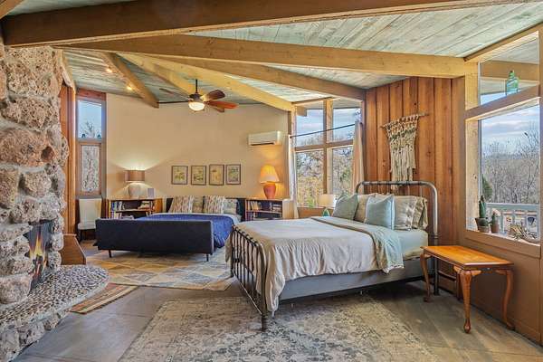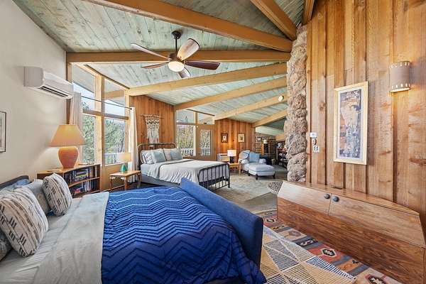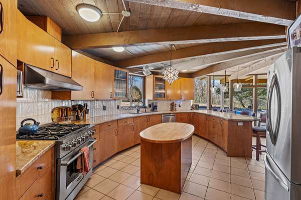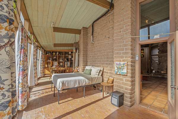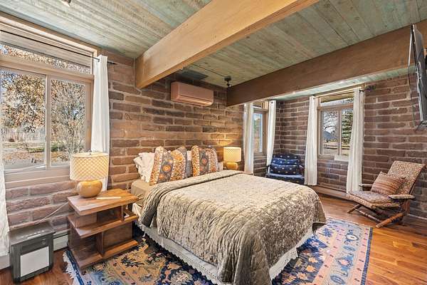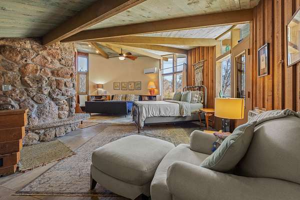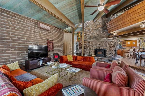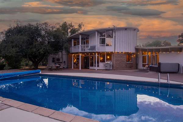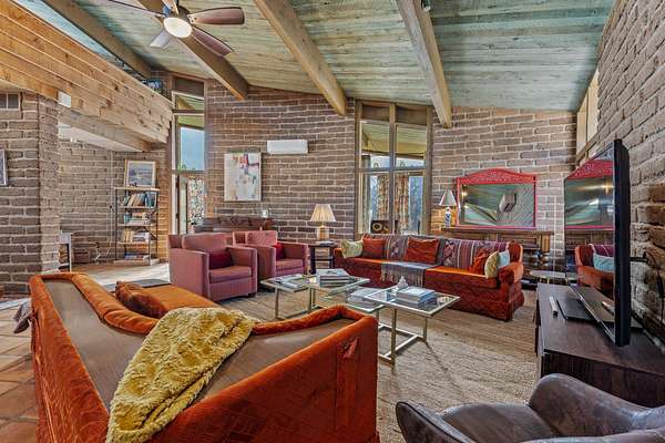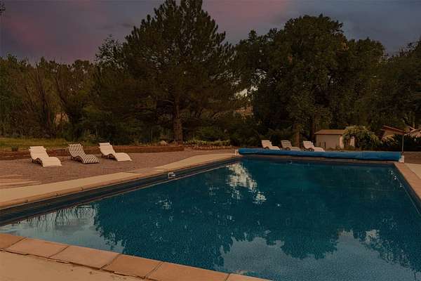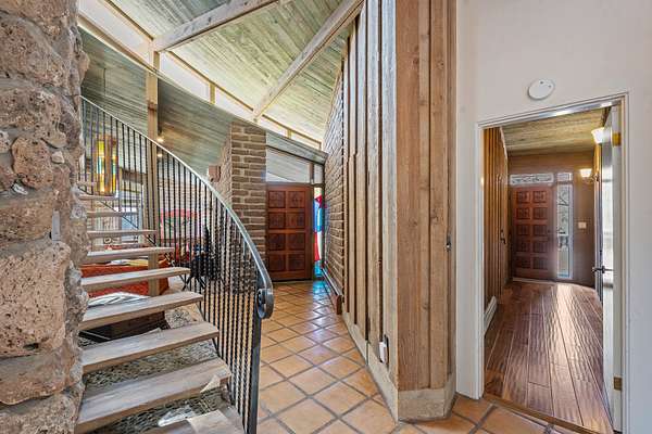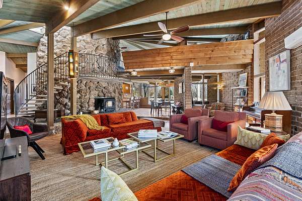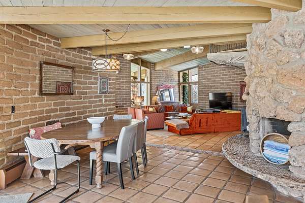 El Caracol Court | 34 State Road 503 is a truly distinctive riverfront property located along the Rio Nambe in the lush Nambe Valley. Designed by renowned local architect Allen L. McNown, a University of Oregon trained architect who settled in Pojoaque in the 1950s and became known for his contemporary adobe work with undulating forms and tinted-light interiors, including the modern church at Nambe Pueblo. The home combines artistic design, functionality, and nature in an extraordinary way. Its form is inspired by the spiral geometry of a nautilus shell, a motif McNown used in other celebrated "snail" houses in the valley, and this architectural concept defines a flowing interior that celebrates light, water, and organic space. Set on approximately 2.10 acres, the property is fully fenced and offers both privacy and usability. It benefits from surface water rights off the Rio Nambe as well as a shared well, providing flexibility for landscaping and irrigation. The grounds include mature trees, gardens, a swimming pool, storage shed, and a separate workshop-a combination rarely found in this corridor.The residence itself measures roughly 4,000 square feet with three bedrooms and three bathrooms. Key design features include adobe and frame construction, dramatic curving walls, exposed wood beams, a lava-rock fireplace, and a sweeping staircase that centers the home's open plan. Additional amenities include: 40' Private swimming pool with adjacent lounge area, covered portal, sunroom with glass enclosure, solar improvements, mechanical system updates, maintained roof and gutters, radon mitigation system, updated appliances, and enhanced irrigation infrastructure. Exceptional maintenance and stewardship, upgrades over recent years that have modernized systems while preserving the artistic integrity of the home. The property has also been operated as a short-term rental, generating consistent income and showing strong demand as a retreat or vacation destination.