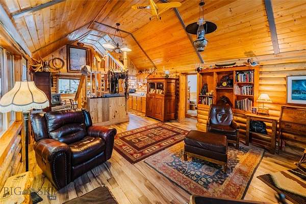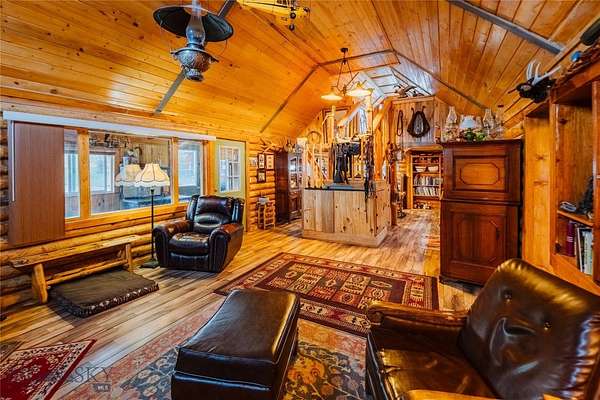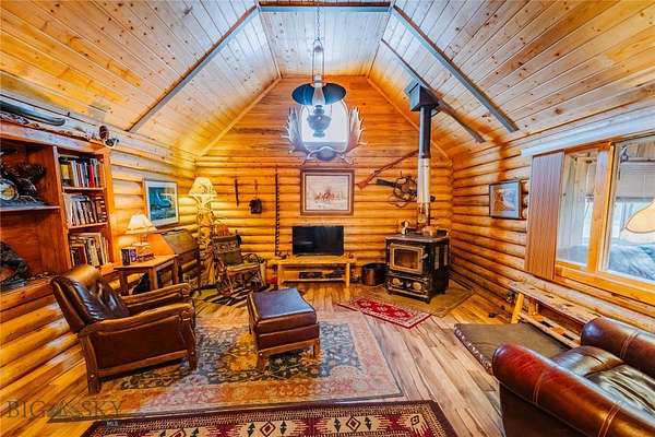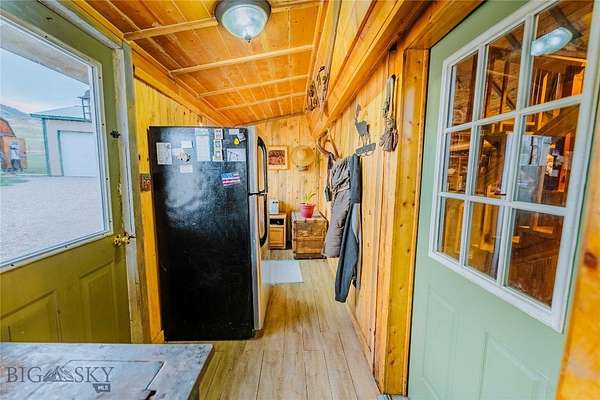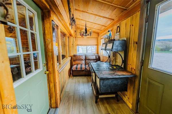 Embodying the essence of coziness and warmth, this property located near Anaconda, Montana, boasts ideal features: waterfront access, abundant recreational opportunities, privacy, and stunning views. Spanning 20.1 acres, the main cabin includes two bedrooms and one bathroom, complete with a woodstove to keep warm during chilly Montana evenings. The meticulously maintained property also features a guest house, greenhouse, workshop, dog kennel, and shed. A balcony extending from the loft area offers a perfect space for reading, relaxation, and enjoying the breathtaking surroundings. With charming knotty pine accents, both the cabin and guest house provide an authentic Montana experience, with hunting, fishing, skiing, hiking, and more just moments away. With seven hundred feet of Mill Creek frontage, the property attracts wildlife, ensuring the area remains pristine and lush. Begin your Montana dream here!