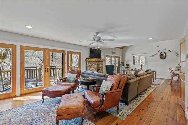 Prepare to be enchanted by this charming storybook cabin in the woods! Welcome to "Once Upon A Stream," a highly successful vacation rental nestled in the picturesque Sapphire community. This delightful property is situated on two generous lots, featuring a bold stream in the backyard where you can watch your kids or grandkids enjoy hours of fun exploring, splashing around, and creating cherished memories in nature. This fully furnished, turnkey home is move-in ready and is just waiting for a new family to make it their own. With five separate sleeping areas spread across three levels, this cabin offers ample privacy and comfort for all your friends and family gatherings, ensuring everyone has their own space to unwind. Ownership also grants you access to a wealth of Sapphire Valley amenities, including the serene Fairfield Lake, two swimming pools (both indoor and outdoor), tennis courts, pickleball courts, a playground, and a host of activities to keep everyone entertained. Step outside and explore the breathtaking beauty that surrounds this home, where lush green forests, winding hiking trails, and stunning waterfalls await your discovery. The property is conveniently located near charming shops and exceptional restaurants, providing all the essentials for your getaways. Plus, it's just an hour from Asheville Airport, making travel simple and convenient. Don't miss the chance to own this beautiful cabin and immerse yourself in the tranquility of nature-start generating income from day one while enjoying the serene lifestyle this property has to offer!