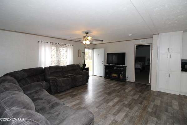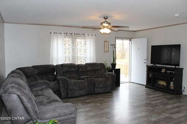 Country Living at its Finest in this Newer 4 Bedroom, 2 Bathroom Mobile Home Nestled on over 2 Acres! As you enter the front door from the large Deck on the Front of the House, you will be welcomed into a large Living Room open to a Beautiful Kitchen which Features an Island with Stools, Lots of Cabinets and an Extra-Large Pantry. The Dining Area right beside the Kitchen has a Sliding Glass Door leading to a large Deck where you can Relax, Entertain, Grill with Lots of Privacy! The Primary Bedroom is to the Left of the Living Room area and has a Large Bathroom with Separate Shower, Soaking Tub and Double Vanity. There is a Large Walk-In Closet off of the Bathroom. The Laundry Room has the Washer/Dryer and room for a Chest or Stand-Up Freezer and another door leading to the Backyard. The Split Floor Plan offers 3 Bedrooms to the Opposite Side of the Primary Bedroom with Each Bedroom offering a Walk-In Closet! The Den is the Perfect Spot for a Game Room, Playroom, Exercise or Craft Room, so many Options with this Extra Space, just another one of the Many Great Features! Worried about those TN Storms, Feel Safer with the Storm Shelter that is in the Backyard. The 10 x 16 Shed Offers Storage for all of those Extras. If you are looking for Privacy and a Newer Home with Lots of Room and Great Closet and Storage Space this Home could be the Perfect Fit! Call Today for Your Private Showing