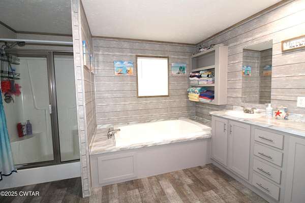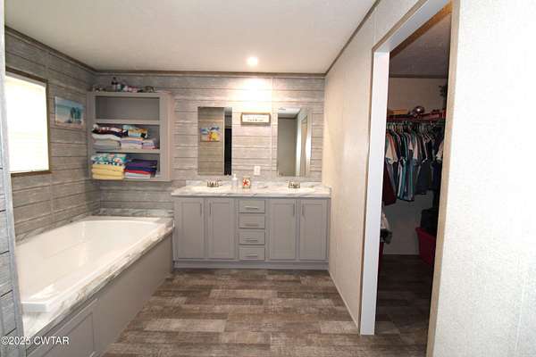 - Ceiling Fan(s), Double Vanity, Eat-In Kitchen, Kitchen Island, Pantry, Soaking Tub, Walk-In Closet(s)