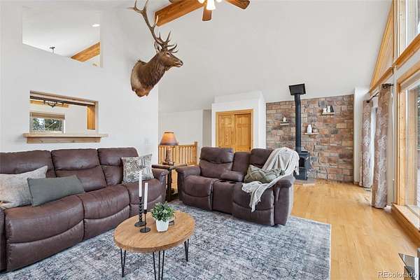 There comes a season in life when you don’t want a project, you want peace of mind. Close enough for convenience and far enough for serenity, this 2.14 acre mountain retreat offers a lifestyle and expansive views that invite you to slow down. From the deck and through the south-facing wall of windows in the living room, you will experience remarkable sunrises and glowing Colorado sunsets every single day. This property has been deeply cared for and well loved by the same owners for many years, and that stewardship shows. Inside, mountain character meets comfort. Real log accents and hickory flooring create that grounded Colorado feel. With 4 bedrooms and 3 bathrooms, the layout is practical and truly move-in ready. Even better, the major systems have already been updated, including a Class IV impact-resistant roof and newer siding (2019), well pump with Pumpsaver (2022), pressure tank (2023), furnace (2023), water heater (2023), and a fire-mitigated lot eligible for State Farm coverage. The fenced backyard provides security for pets or outdoor play. A greenhouse awaits, ready for year-round gardening and mountain homesteading dreams. With 2.14 usable acres, you have natural buffer and room to breathe, plus the option to bring up to two horses if desired. Trailer and camper parking allow flexibility for travel, hobbies, or guests. For those who drive full-size, the attached garage comfortably accommodates an F350, a practical detail that speaks to thoughtful design. Highline high-speed fiber optic internet ensures seamless remote work and streaming. The local park is close enough to walk to, a simple pleasure that is hard to find in mountain living. Schedule your showing today! Burland HOA is optional at $25/year. Enjoy privacy without isolation. The heavy lifting is done so that you can have confidence in your investment. This immaculate mountain home is ready when you are. VIDEO: https://youtu.be/OJjPH77IhJ0
