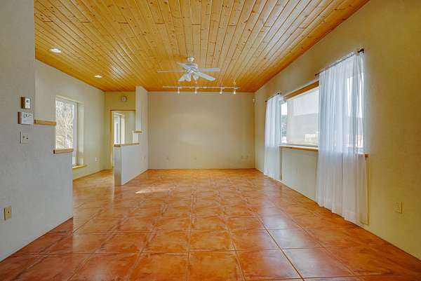 Location, Location, Location. Views, Views, Views and NO Resort Dues. Flexible use...this home is centrally located within Angel Fire with views to the ski area and Wheeler Peak. Zoned C-1, ADA compliant, single level, so has great flexibility to be used as a single family home or commercial or both for the Live/Work style of living! Extremely thoughtful layout with Rastra block construction, radiant in-floor heating, abundant natural light, lovely walled courtyard and covered entry. Floor is ceramic tile and ceilings are pine tongue and groove. Four separate rooms/bedrooms/offices, large open living space which can be used as a lobby/retail area with free standing gas "woodstove". Attached studio/suite was used as bedroom #5 does have its own private entrance and also has access to main living area. Adjacent properties are available to buyer of the home through a separate purchase. Lots A & C will be offered to buyer for $75,000 each. The possibilities are endless with this one!!!