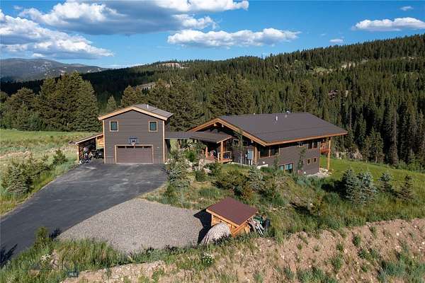 Nestled in the heart of Big Sky, this stunning mountain modern chalet offers the perfect blend of luxury, comfort, and convenience. The 3-bedroom, 3.5-bath main house is designed for both grand entertaining and cozy retreats, featuring a spacious vaulted great room with exposed wood timbers, a Tulikivi soapstone fireplace, and high-end modern appliances and finishes throughout.
