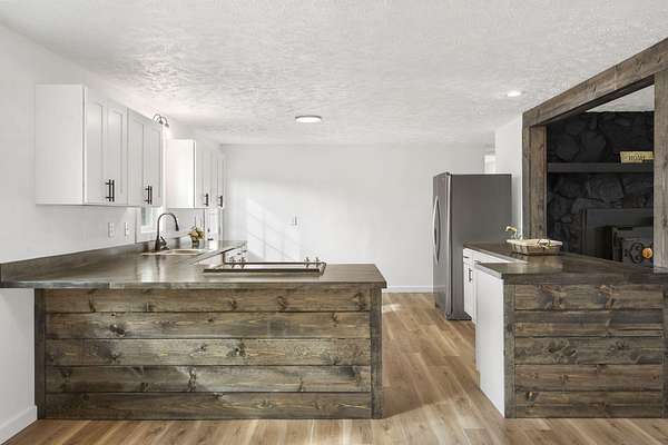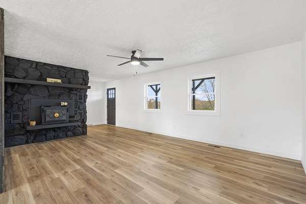 Completely remodeled country retreat! This 4-bedroom, 3-bath home offers an inviting open floorplan centered around a stunning rock fireplace. The spacious kitchen features a butcherblock countertop and flows effortlessly into comfortable living and dining areas. Enjoy a large laundry/mud/sun room perfect for country living. Outside, you'll find three outbuildings--one originally designed for horses, plus an operational chicken pen and plenty of space for hobbies or storage. Mature trees provide shade and privacy, while amazing views surround the property. An attached two-car garage and easy access to several nearby towns make this the perfect blend of peaceful country living and modern convenience!