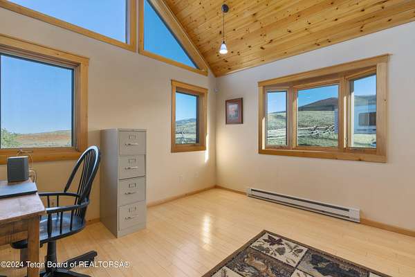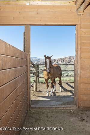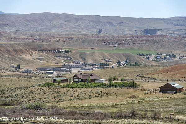Est $12,529/moAt the end of the private road lies this well crafted 4 bedroom, 4 bathroom home. This spacious 4,178 sqft home on 34.04 acres features walls of windows, that take full advantage of the views of the badlands, Absaroka range and the Bitteroots of Wyoming. The 1,394 sqft, 2 stall horse barn, provides space for your equine friends and the hay and equipment to care for them. Private horse access to public lands allows riding directly from the house. With abundant wildlife, outdoor activities and great proximity to all Western Wyoming has to offer, this is your western paradise. This home is being sold separately or as part of the 257 acre Windbreak Ranch, MLS# 24-1957.