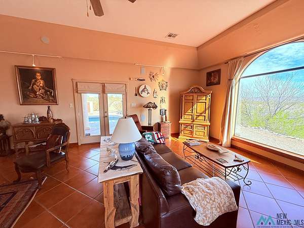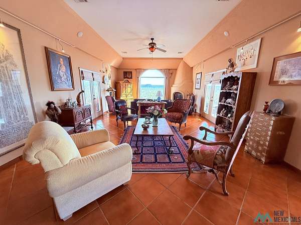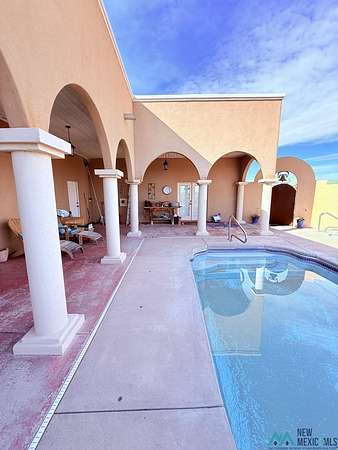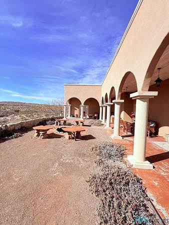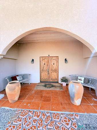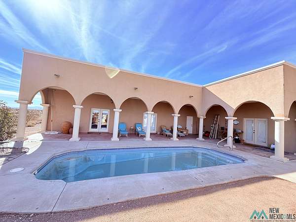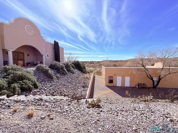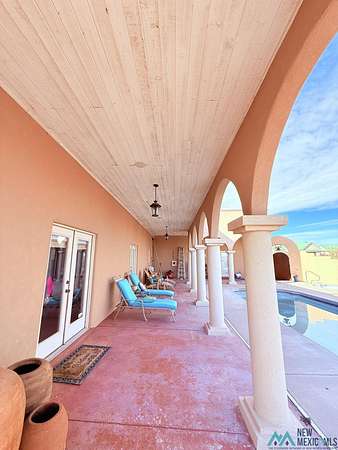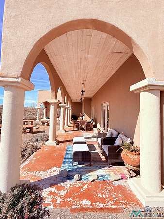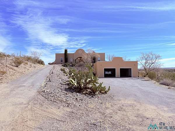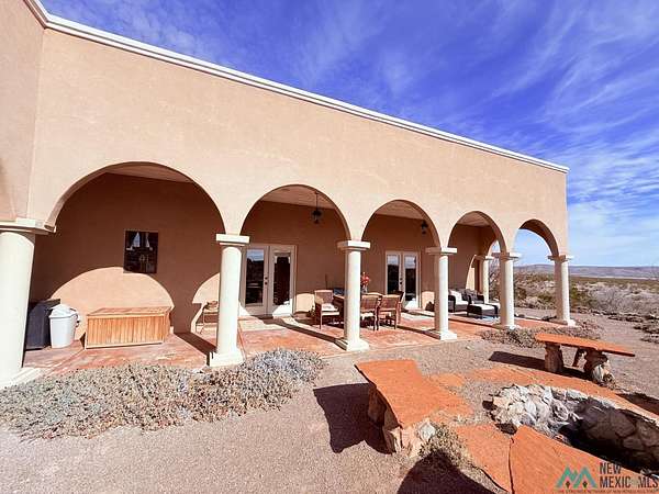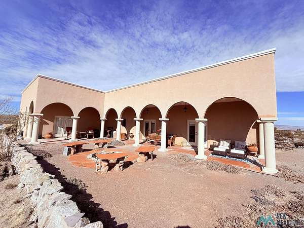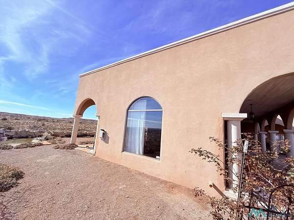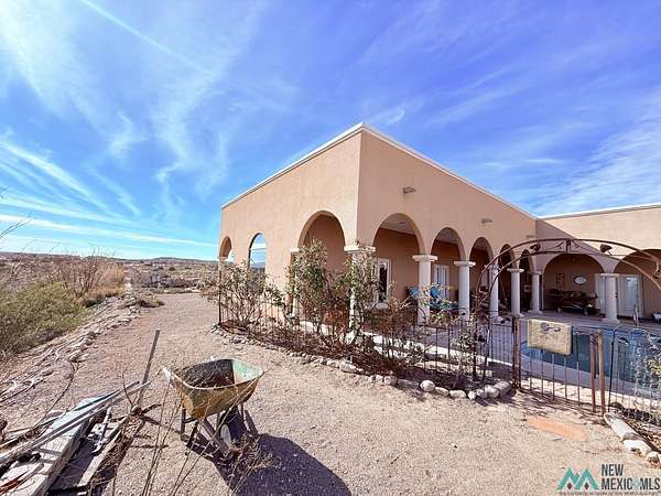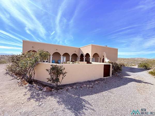 STEP INTO A WORLD WHERE ANCIENT ELEGANCE MEETS MODERN COMFORT IN THIS STUNNING PROPERTY, METICULOUSLY CRAFTED TO EVOKE THE TIMELESS SPIRIT OF GREEK ARCHICTECTURE. INSPIRED BY THE SELLER'S IN-DEPTH KNOWLEDGE AND APPRECIATION OF THE CULTURE, TALL CLEAN -LINED COLUMNS PROVIDE A MAJESTIC "TEMPLE-FRONT" AESTHETIC GRAND ENTRY. ONCE INSIDE, A VIEW OF THE LAKE AND KETTLETOP IS BEAUTIFULLY FRAMED BY THE LARGE PICTURE WINDOW AT THE OTHER END OF THE HOME. THE FLOWING FLOOR PLAN WITH HIGH CEILINGS AND ARCHED DOORWAYS ECHO THE MONUMENTAL BEAUTY OF THE MEDITERRAINEAN. THE LAYOUT IS MASTERFULLY ENGINEERED FOR CROSS-VENTILATION WITH STRATEGICALLY POSITIONED OPENINGS THAT INVITE REFRESHING BREEZES TO FLOW NATURALLY THROUGH THE LIVING SPACES, CREATING AN AIRY SUSTAINABLE ENVIRONMENT THAT REDUCES THE NEED FOR MECHANICAL COOLING. FEATURES IN THIS 2515 SQ FT HOME INCLUDE A COMPLETE SOUND SYSTEM, 2 SPACIOUS MASTER SUITES WITH SITTING AREAS, WALK IN CLOSETS, FIREPLACES, FULL BATHS, SALTILLO TILED FLOORS THROUGHOUT. KITCHEN WITH STAINLESS STEEL APPLIANCES, CUSTOM CABINETS BUILT BY LOCAL ARTIST RICHARD EPSTEIN, CORIAN COUNTERTOPS THAT DO NOT BURN OPENS TO THE DINING ROOM AND LIVING ROOM MADE COMFORTABLE WITH ANOTHER KIVA STYLE FIRPLACE AND LOTS OF NATURAL LIGHT. ENJOY EVENINGS EITHER BY THE FIREPIT OR OUTDOOR HEATED SWIMMING POOL AND SEPARATE HOT TUB. OUTDOOR SHOWER, PATIO IS WALLED FOR PRIVACY. THIRD BEDROOM, FULL BATH, CLOSET SPACE, LOCATED IN THE CASITA. LARGE 2 CAR GARAGE THAT IS FINISHED WITH ROOM FOR A WORK AREA. THIS ONE OF A KIND VERY WELL TAKEN CARE OF SITS ON A LITTLE OVER 4 ACRES BORDERED ON 3 SIDES BY BLM LAND. TRULY WORTH VIEWING.
