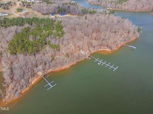 Est $1,242/moCLEARED 0.69 acre building lot with WATER VIEW offers 100 feet of water frontage on beautiful KERR LAKE. Has shoreline permit in a protected cove that provides quick access to the wide open water; permit can be upgraded for a dock. Located in a GATED COMMUNITY with covenants to protect your investment. An additional one acre off-site septic lot is included and located across the street with piping in place, leaving the full 0.69 acre free for construction of your new home and amenities.