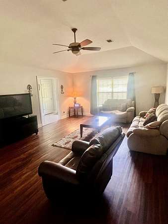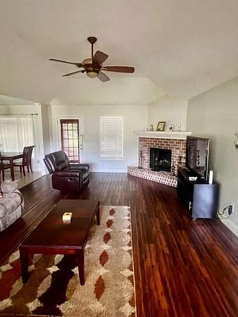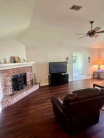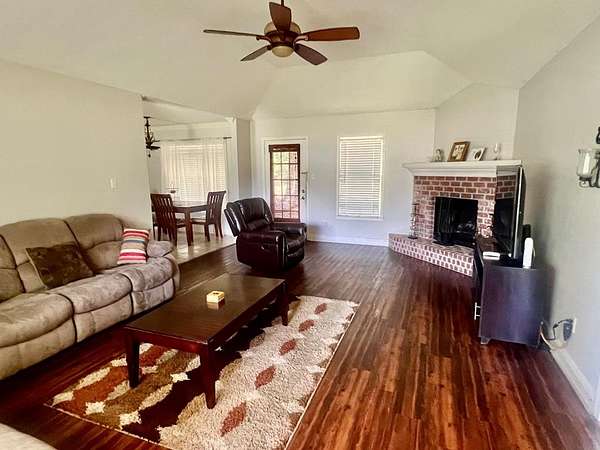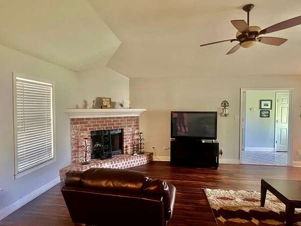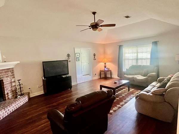 Est $1,116/moTake a look at this lovely 3 bedroom / 2 bath home sitting on 1.9 acres with big pretty oak trees. Step into the foyer and enjoy the large living room with a welcoming wood-burning brick fireplace. Galley kitchen with lots of cabinet space. The bedrooms are nice-size rooms with roomy closets, the master bedroom has a big walk-in closet, master bath has jetted tub. Sit on the big front porch or the breezy back patio and enjoy the birds singing and the company of family & friends! This property also offers a large 16x20 workshop with electricity. Great location...Nice subdivision...property is on a quite dead-end road in the cul-de-sac. Priced to Sell...Don't Miss This!