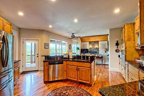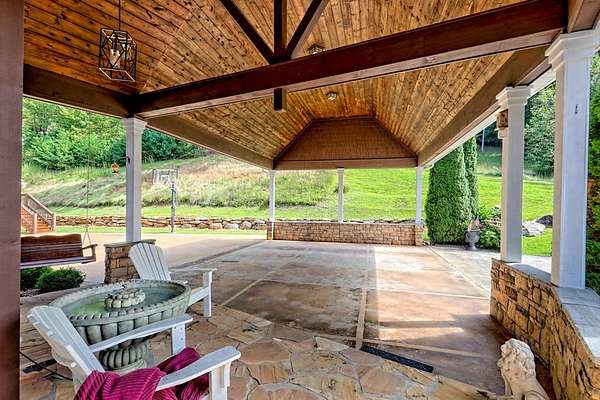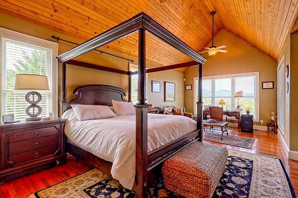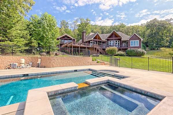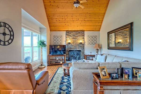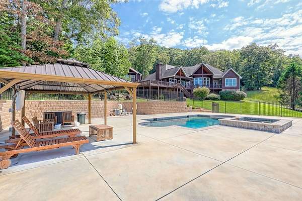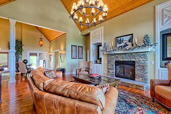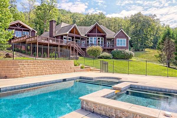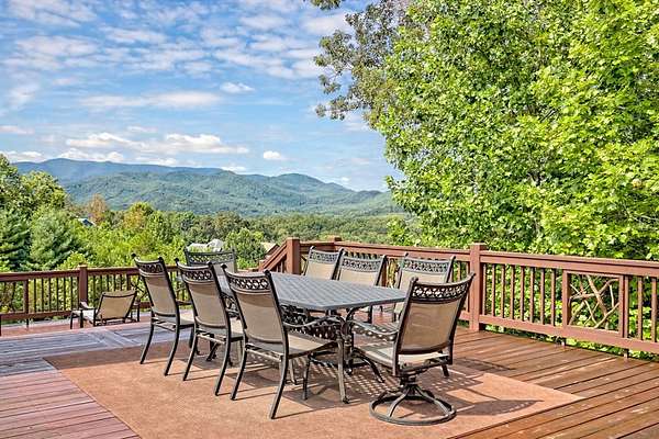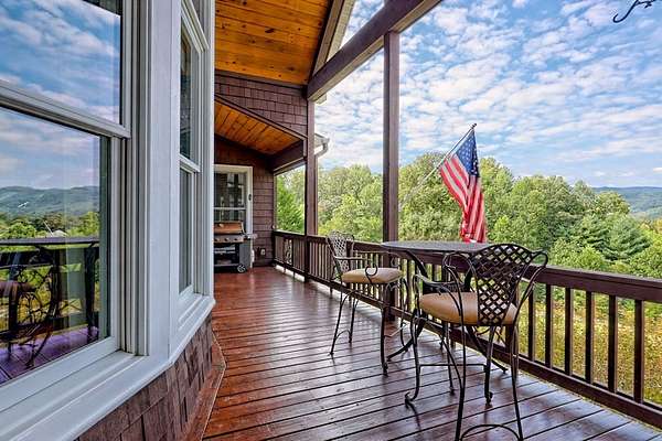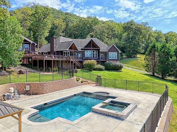 Perched above the valley with sweeping year-round mountain vistas, this extraordinary estate blends grand design with refined comfort. Enter through the grand entry and exit to the expansive decks, a heated salt-water pool & spa, and sunset views that take your breath away. Spacious Inside, walls of glass frame mountain views from the expansive family room, while the primary suite offers a serene retreat, an in-room fireplace, spa-like bath, and private access to the mountain-view deck. Entertain with spirited billiards in the recreation room as memories are made together. Car enthusiasts will love the climate-controlled 3-car garage with EV charger and space to showcase or work on a classic car collection, plus a private apartment above for guests or extended family! Just minutes to Franklin, North Carolina's boutiques, dining, and adventure--enjoy autumn drives along the Blue Ridge Parkway, experience Fall at Franklin PumpkinFest, and winter fun at Highlands Outpost or Sapphire Valley Ski Area before returning to your own, personal mountain resort. Don't miss your opportunity to own this Mountain Estate! Appointment Only! Furnishings Negotiable. Apartment above garage is 2bd/1ba