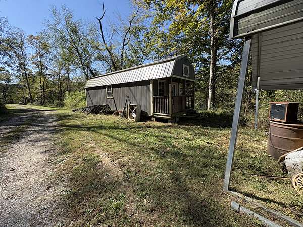 Opportunity awaits on 9 rolling, unrestricted acres featuring a finished 14' x 28' tiny home on a permanent foundation with septic, water, and electric. The property also includes an 8' x 12' utility building and a second unfinished 11' x 32' tiny home with a 3' covered front porch, ready for completion and utility connection. Ideal for a weekend retreat, future residence, or investment opportunity. Note: The finished tiny home is a converted utility structure, not a traditional site-built residence. Tenant occupied--do not disturb renter.