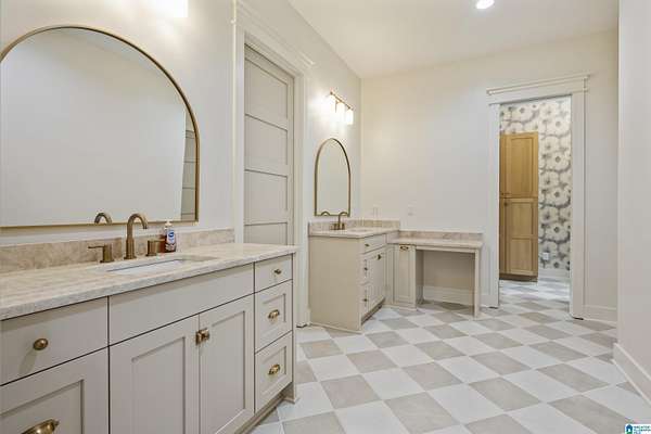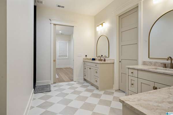 - Double Shower, Dressing Room, Garden Tub, Linen Closet, Recess Lighting, Separate Shower, Separate Vanities, Sitting Area in Master, Tub/Shower Combo, Walk-In Closets