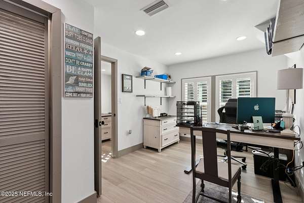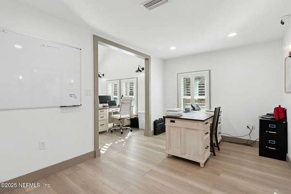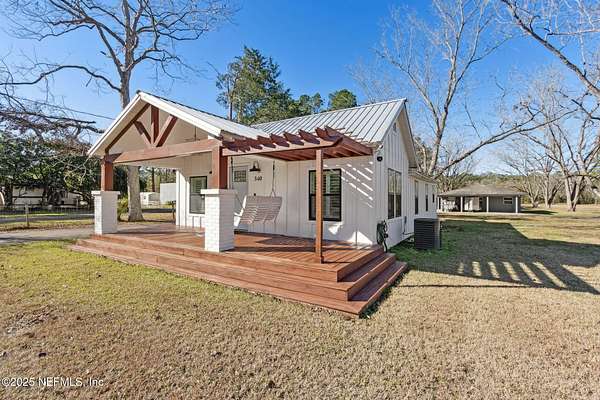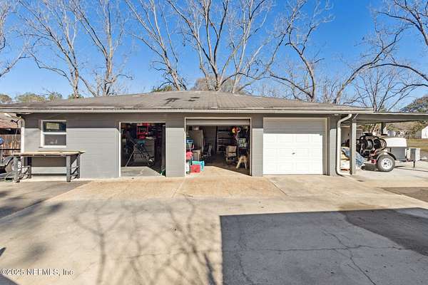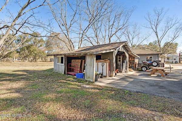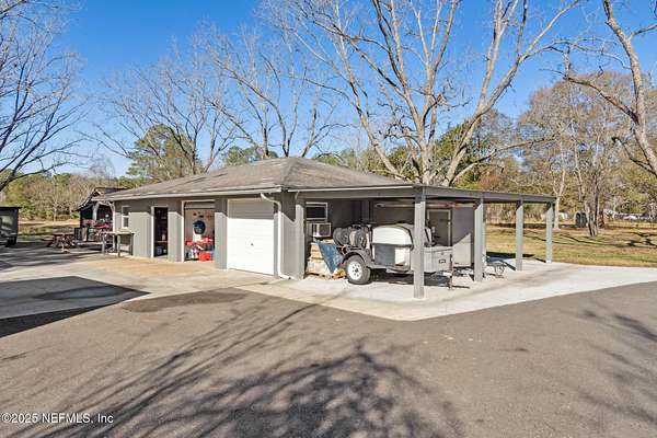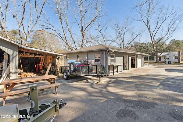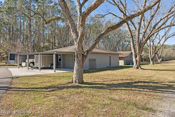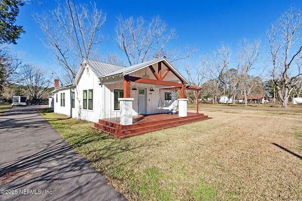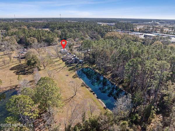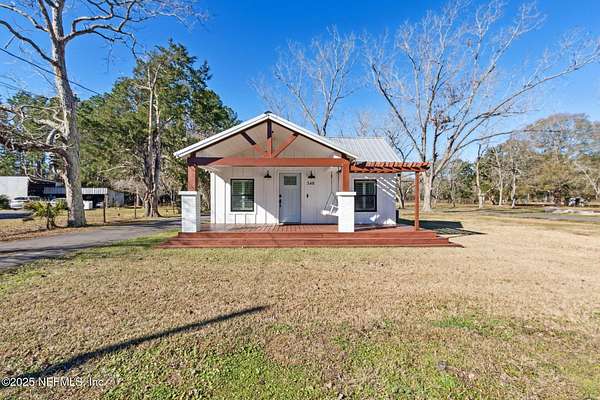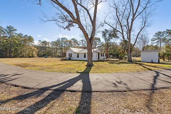 Discover this stunning property on 2.96 Acres! Completely remodeled dwelling featuring vaulted ceilings, plantation shutters, fresh paint, updated 1/2 bath, and stylish new flooring throughout. This versatile space is ideal for anyone owning a business with its generous layout, or easily transform it into an adorable cozy family home. The property boasts a 3+ car garage with its own convenient half bath, a carport, a barn/shed, and an additional shed for all your storage needs. With two separate septic systems and a residential/agricultural zoning, the possibilities are endless! Enjoy the tranquility of a large pond right in your own backyard great for fishing and irrigation plus multiple producing pecan trees. Don't miss this incredible opportunity! Could be a fantastic place for agricultural business base. Landscaping, Nursery, build a Barndominium and have your office on the same land. Fantastic location right off of I-10.