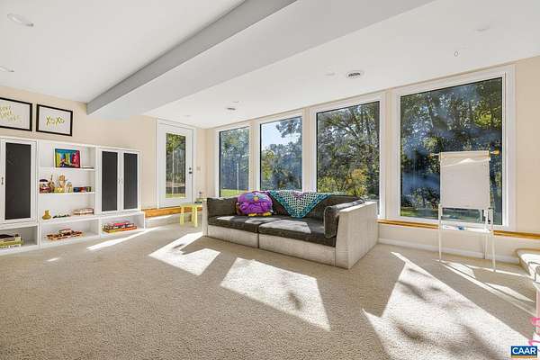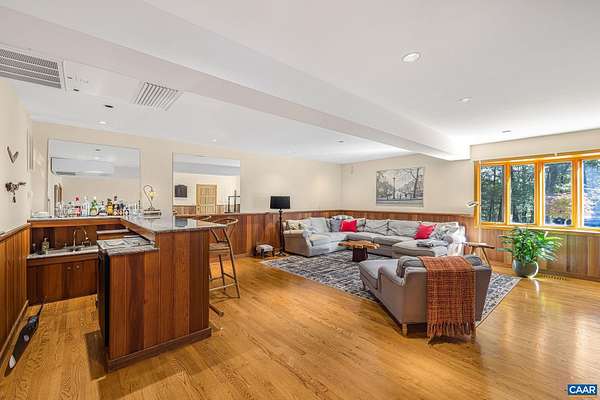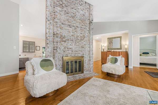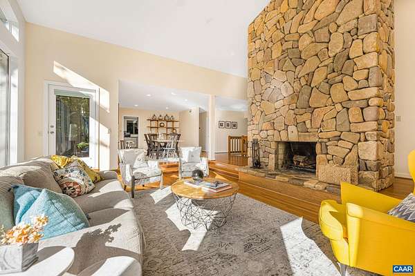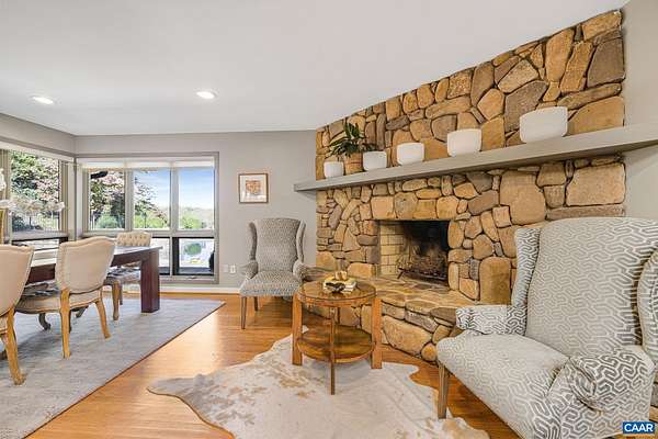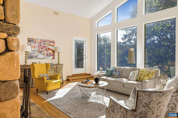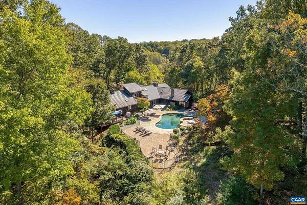 Spectacular contemporary home, with over 7,500 finished sq.ft. of living space, privately situated atop nearly 17 serene park-like acres in the highly desirable Ivy area with Blue Ridge Mountain views! Truly a special & unique offering with a wealth of opportunities to enjoy! Two residences joined as one, the main living quarters boasts an inviting floor plan over two levels that have been tastefully renovated. The main sunken living room is filled with natural light and has a soaring stone fireplace as the centerpiece. The kitchen features granite countertops, stainless steel appliances, another stone fireplace and attached family or dining space. The primary bedroom has a sitting area, walk-in closet and an attached bath with dual vanities, soaking tub and walk-in shower. The lower level features a family room with fireplace, three bedrooms and plenty of bonus/storage space. The guest quarters have been recently renovated with a new kitchen and include 2 additional bedrooms and baths. The rear fenced stone terraces with pool, hot tub, fire pit and mountain views are a gem and an entertainer's dream! This one is must see!!!