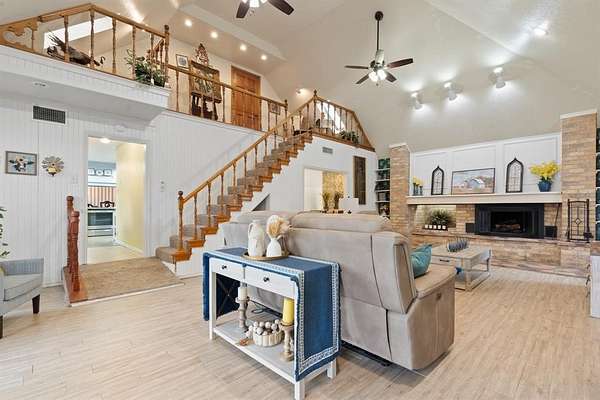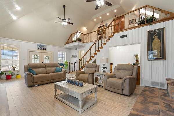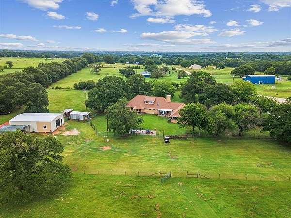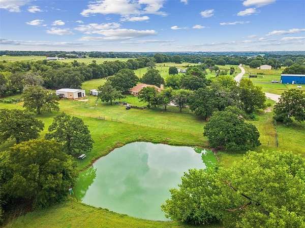 Motivated Sellers!!!! This beautiful property offers the perfect mix of country charm and modern convenience with 10 ag-exempt acres, a stocked pond, and a spacious 35x40 workshop with electricity. The 3-bedroom, 2-bath home features an open layout that's ideal for gatherings, a cozy fireplace, and a bonus upstairs room that can be used as a game room, man cave, or home office. Outside, you'll find mature trees that provide shade and privacy, fully fenced and cross-fenced pastures for cattle or horses, and plenty of space to add a pool, garden, or extra outdoor living areas. Additional barns, a carport, and a private deep well make this property ready for livestock, projects, and storage. Conveniently located just minutes from town, it's the perfect spot for peaceful country living. With a recent $45,000 price drop, this property is one of the best values in the area and won't last long! Water heater- 2018, Roof and HVAC- 2019, Pipe fencing, well and shop added in 2022 as well as many recent upgrades.