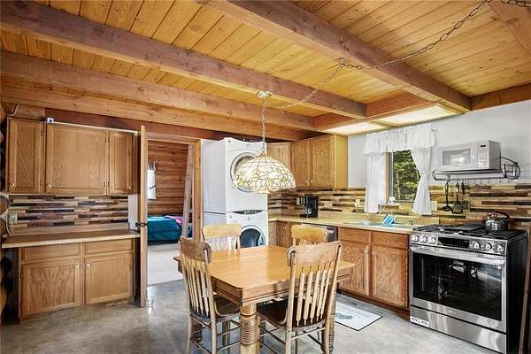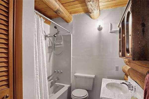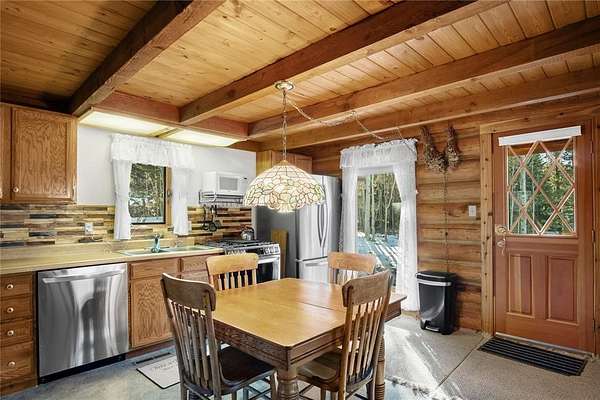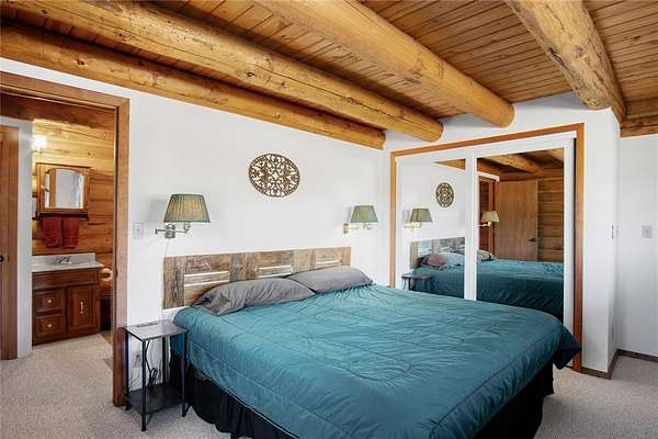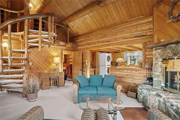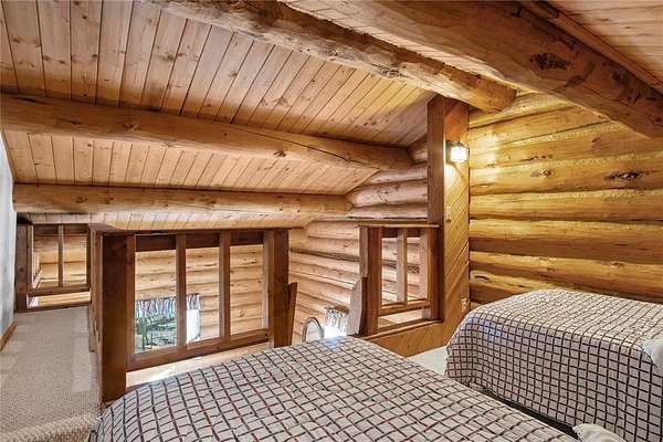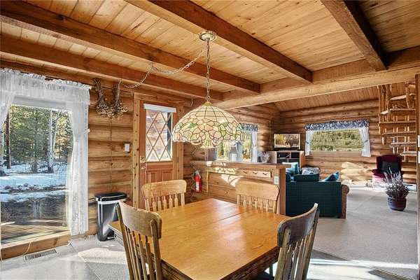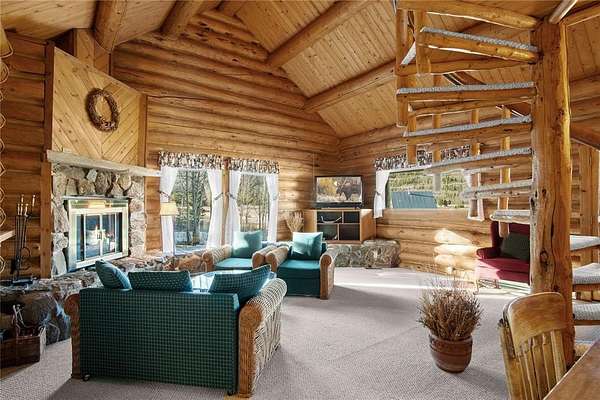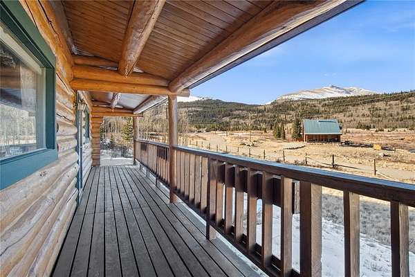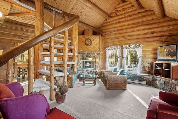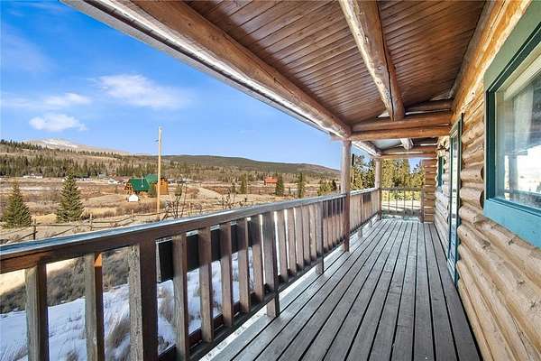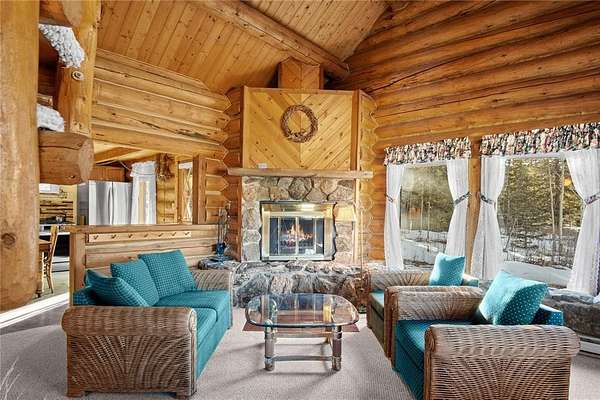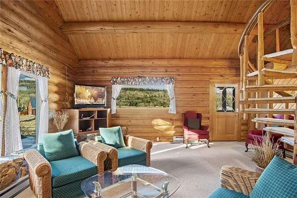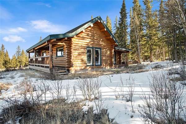A little slice of mountain paradise awaits at this authentic log cabin retreat. Set on over two acres, you can see and hear water cascading from the beaver dams along Mosquito Creek while enjoying stunning cross-valley views of the Mosquito Range. Surrounded by mature aspen and conifer trees on three sides, the property offers a quiet and private mountain setting. Crafted from full-diameter, hand-hewn scribed logs with traditional chinking, the home exudes character and timeless cabin charm. Inside, the inviting great room is anchored by a corner wood-burning fireplace with a moss rock surround, creating the perfect place to gather after a day in the mountains. A handcrafted log spiral staircase wraps around a central log column, adding a striking architectural focal point. The eat-in kitchen has been recently updated with new stainless-steel appliances, including the refrigerator, range, and dishwasher, making it both functional and welcoming for everyday living or hosting. Three bedrooms provide flexible sleeping arrangements for family and guests, including a main-level primary suite with a private ensuite bath, a secondary main-floor bedroom with a loft sleeping area, and a secluded upper-level bedroom complete with a small private balcony. Recent updates include a connection to natural gas along with a new furnace and water heater. Broadband internet keeps you connected while enjoying your mountain escape. Outside, a long front porch overlooks a gently sloped clearing with beautiful views – perfect for morning coffee or relaxing under the stars. With ample parking and plenty of space to enjoy the surrounding landscape, this fully furnished charming log cabin is move-in-ready to become your perfect basecamp in the Rocky Mountains.