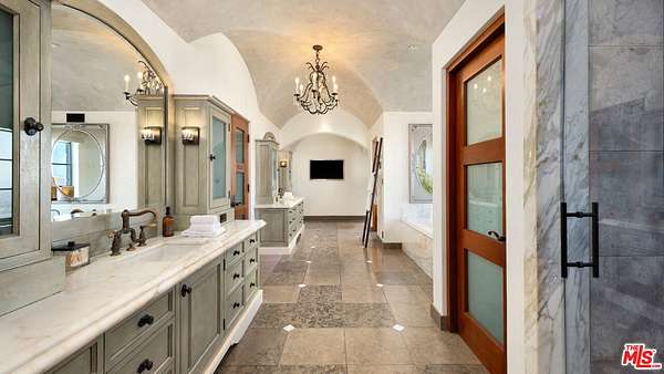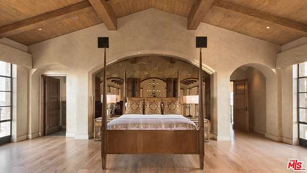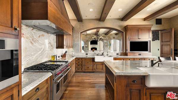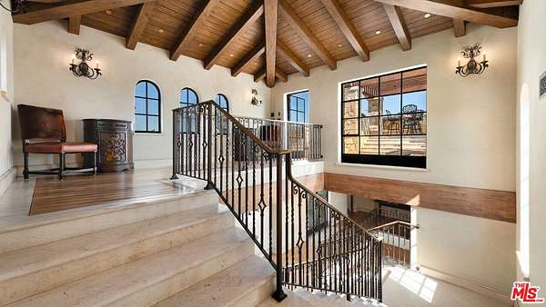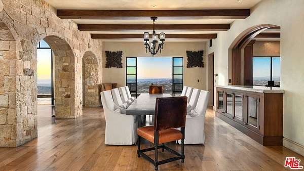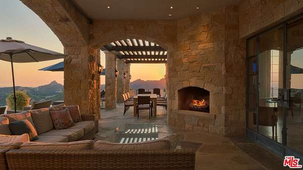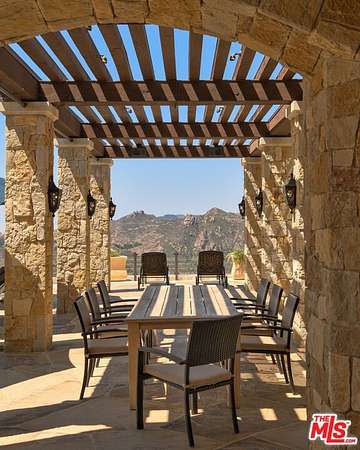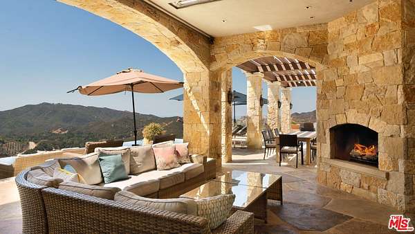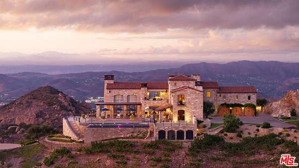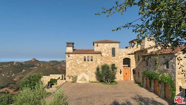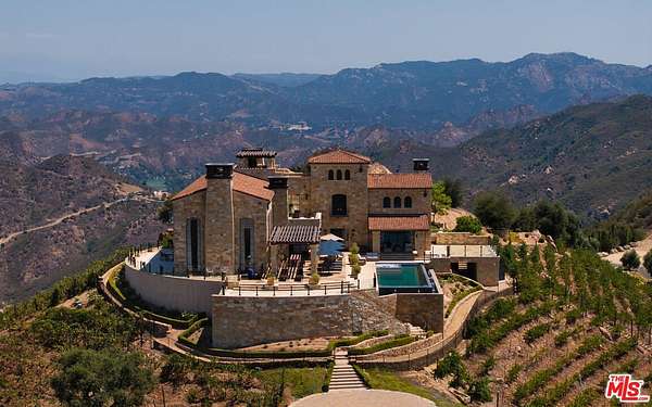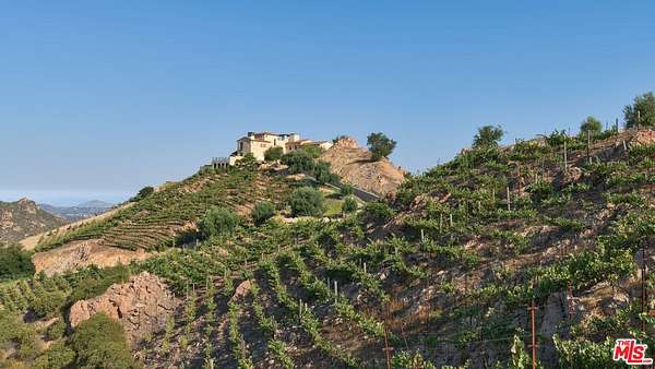 Set high above Malibu's celebrated wine country, Rocky Oaks Estate crowns more than 37 acres of rolling vineyards and dramatic canyon ridges, offering an extraordinary blend of privacy, grandeur, and natural beauty. Approached through stately wrought-iron gates and a sweeping driveway, the residence occupies a commanding knoll with uninterrupted vistas stretching from the Pacific Ocean to the surrounding mountains. Designed by acclaimed architect Bob Easton, AIA, this Tuscan-inspired villa spans over 7,600 square feet and is finished in timeless stonework that evokes European craftsmanship. Inside, soaring ceilings, walls of glass, and refined proportions create a setting that is both elegant and inviting. A dramatic great room with a cathedral ceiling and monumental fireplace flows effortlessly onto expansive terraces that frame the panorama. The formal dining room, professional-grade chef's kitchen with butler's pantry, and multiple gathering areas make the home ideal for both intimate living and grand entertaining. The primary suite is a private retreat with its own terrace and fireplace, spa-inspired bath, and dual dressing rooms, while three additional guest suites, staff quarters, and a media room ensure comfort for family and visitors. An elevator, three-car garage with ample guest parking, and a rooftop observation deck offering 360-degree views elevate the lifestyle experience.Outdoors, the estate is a sanctuary of leisure and beauty. Wraparound loggias with fireplaces, a dining pavilion, an infinity-edge pool and spa, and a circular observation pad invite year-round enjoyment of Malibu's climate. Nearly five acres of the estate are dedicated to the Rocky Oaks Vineyard, established in 2003 and now one of the most renowned vineyards within the Malibu Coast American Viticultural Area. Producing award-winning varietals recognized for their exceptional quality, the vineyard carries forward a legacy of winemaking that dates to the early 1800s in this region. Rocky Oaks Estate is more than a residence- it is a landmark of architectural vision, viticultural excellence, and Malibu prestige, awaiting its next discerning steward. This home is being offered in partnership with Paramount Realty USA. Seller may accept or reject offers at any time. Visit Paramount Realty USA's website for full terms and details.