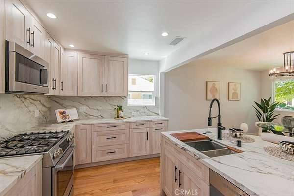 Welcome to 340 N. Mariposa!?Nestled on a peaceful, tree-lined street, this beautifully renovated home is a true gem with natural redwood flooring, copper plumbing, 2 HVAC systems and a tankless water heater. Boasting 4 bedrooms, 3 full bathrooms, and 2,185 square feet of living space, it offers both elegance and functionality. Step inside to discover a chef's dream kitchen, featuring porcelain countertops, sleek new BOSCH appliances, and a welcoming bar area--perfect for entertaining. Just down the hall, you'll find 3 spacious bedrooms, each with generous closet space. Upstairs, the luxurious primary suite offers a serene escape, complete with a spa-like bathroom and a private balcony with scenic views. It's a personal retreat you'll never want to leave. The beautiful french doors lead out to a beautifully landscaped backyard with lush green grass, high-end BBQ, and a cozy fire pit--ideal for relaxing evenings under the stars. The long driveway provides ample space for car enthusiasts, along with RV and boat parking, or a safe playground for kids. The fully finished garage, featuring double-doors to the yard, makes an excellent game room or hangout space. Located just blocks from George Izay Park and Walt Disney Elementary School, this home offers access to award-winning Burbank schools. Enjoy being minutes from major studios like Warner Bros., Disney, and Universal, with shopping and dining options at Downtown Burbank, Magnolia Park, Costco and the Empire Center just a short drive away.