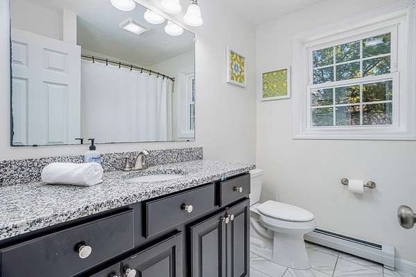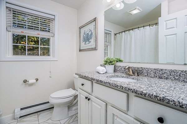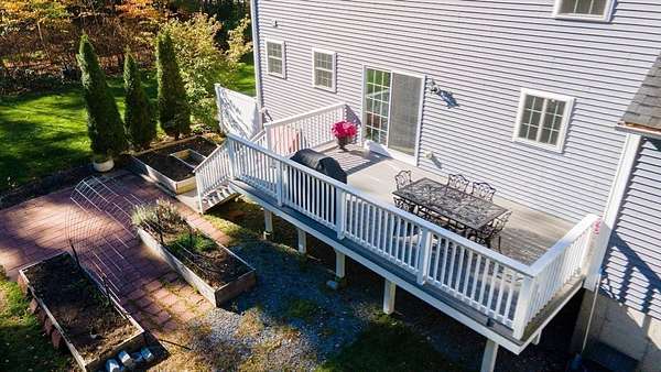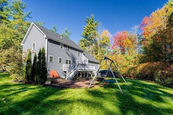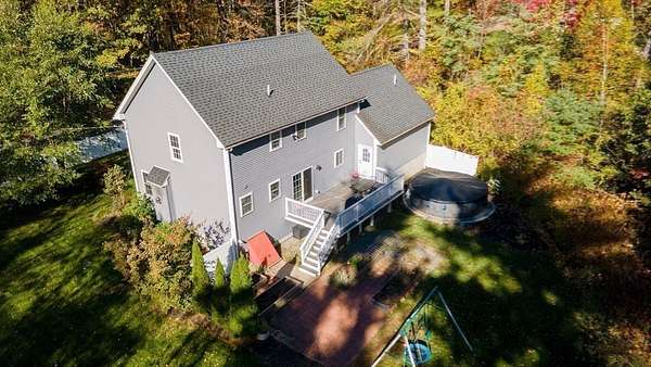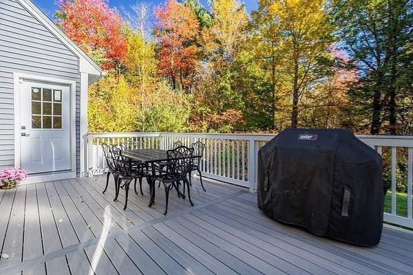Second chance opportunity to purchase!! Tucked away on a quiet country road, this beautifully maintained 3-bedroom, 2.5-bath home offers privacy, charm, and convenience. Set on over 4 acres abutting conservation land, enjoy wooded trails and a gentle brook right from your backyard. Inside, the sunny living room features hardwood floors and a cozy propane fireplace. The kitchen boasts granite counters, ample cabinetry, and a gas cooktop. The back-to-front primary suite offers a bright retreat with private bath and custom walk-in closet, while two additional bedrooms feature large closets and easy access to a full bath. Relax or entertain on the expansive easy maintenance composite deck overlooking the fenced-in yard with a new irrigation system. A partially finished basement adds bonus space for a gym, office, or playroom. You will be blown away by the spaciousness of the rooms. Plenty of space for activities both inside and out! New wall mounted boiler. Energy efficient home