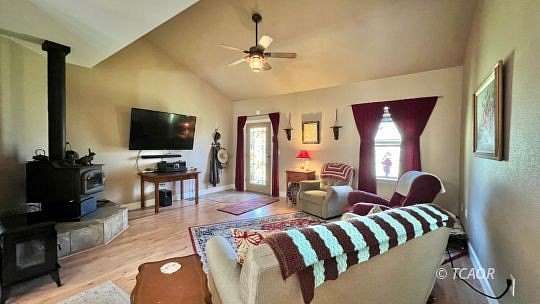 - Laminate/Formica Laminate, Countertops Vaulted Ceilings, Walk-In Closet(s), Ceiling Fan(s), Wood Stove, Flooring