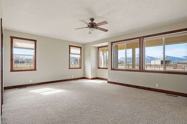 Imagine a place where every window frames the majesty of the Bitterroot Mountains, where mornings begin with crisp Montana air, and days are spent riding or simply soaking in the open skies. This exceptional 3-bedroom custom home at 340 Selway View Rd offers just that. The home itself is a masterpiece of thoughtful design: a gourmet kitchen with granite countertops, expansive family spaces, a cozy gas fireplace and woodstove, plus a bonus room and dual laundry areas for convenience and flexibility. Every detail enhances both function and style, creating spaces that are as beautiful as they are livable. Step outside and the property unfolds into a horse lover's paradise. A barn with stalls, a 120x240 riding arena, a hay barn, and geothermal automatic waterers create a turnkey equestrian setup. This is more than a home, it's a lifestyle.