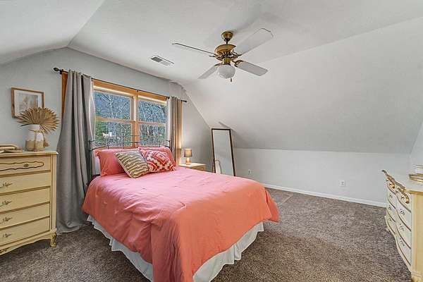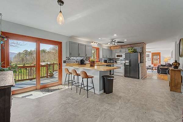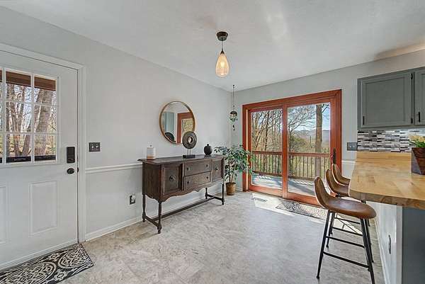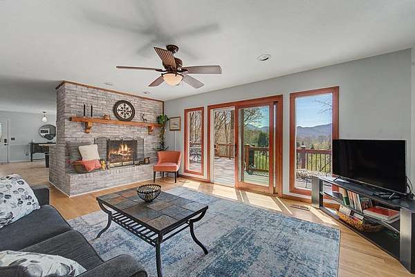 Welcome to your peaceful mountain retreat with a country feel just 10 minutes from downtown Franklin! Spacious 3 bedroom home with an additional bonus room (could be 4th bedroom) is perfectly situated on 2.02 usable acres, offering long range views, paved dead end road & a highly desirable location. Inside, you'll find an open, bright, & airy floor plan featuring a large kitchen, formal dining room & a cozy gas log brick fireplace that anchors the main living space. The home offers abundant storage throughout, making it as functional as it is inviting. Step outside onto the expansive back deck, redone in 2023 & take in the stunning scenery, perfect for relaxing or entertaining. The lower level boasts a large family room with a woodstove, bedroom, bathroom & offers excellent potential for a separate, income producing living space. Additional highlights include dual thermostats for added comfort & efficiency, a storage shed & thoughtful recent upgrades such as exterior painting in 2024, pressure washing 3/26 & serviced HVAC units 3/26. Offered at $565,000, this property combines space, comfort, and opportunity in a beautiful mountain setting don't miss your chance to make it yours!