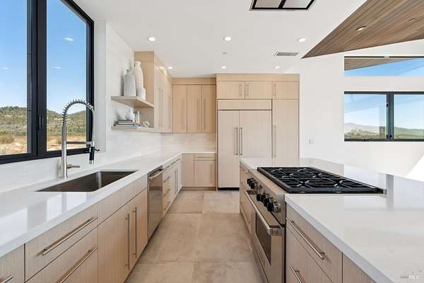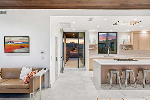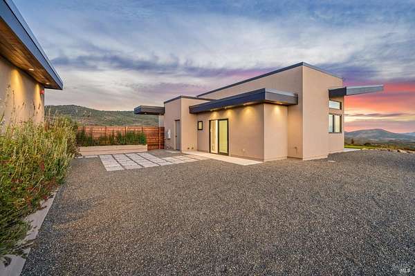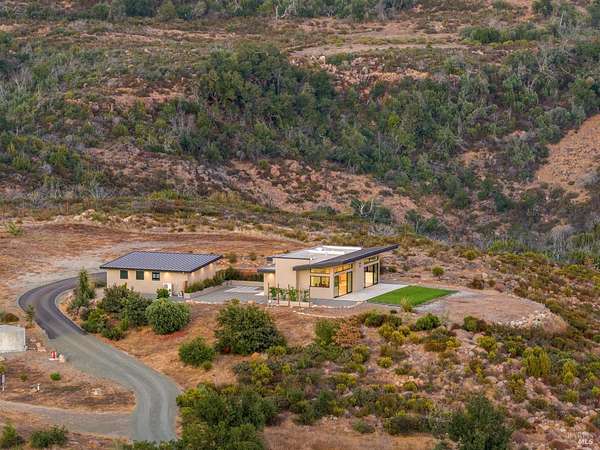 Perched atop more than 28 acres on Napa's renowned Atlas Peak, this newly constructed modern studio is a true private retreat. Walls of glass frame sweeping panoramic views - stretching across the valley floor to the San Francisco skyline - while dramatic architectural lines and luxury finishes create a sophisticated living experience. The gourmet kitchen, outfitted with Wolf and Subzero appliances, is designed for culinary inspiration. Positioned on an expansive plateau reserved for a future main residence with septic already in place, the property offers the opportunity to live comfortably in the studio while envisioning and designing your private Napa Valley estate. A large agricultural barn adds versatility and functionality to the property. Approximately 20 acres below the plateau are preserved under a conservation easement, ensuring lasting privacy and protecting the rugged natural beauty of the land. For those seeking additional potential, under a separate listing (3438 Atlas Peak Road) adjacent to the property, is an additional parcel just under 9 acres that is also available - plantable and ready to complement this exceptional estate. This property presents a rare opportunity to create a private Napa Valley sanctuary with unmatched seclusion, elegance, and possibility.