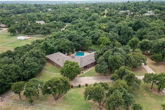 Back on the market at no fault to the seller. Previous buyers' contingent contract was not able to be fulfilled***Welcome to your private sanctuary in the heart of SE Edmond. This 5 Acre one-of-a-kind property offers a lifestyle of unparalleled comfort and luxury. Inside the spacious ranch style home, you will find a grand living room with soaring ceilings, brick fireplace, deluxe mini bar, and tons of natural light. The heart of the home lies in the functional kitchen with a sub-zero refrigerator, Bosch dishwasher, Dacor professional range, double wall ovens, pot filler and a walk-in pantry. The stunning office/study has a beautiful library paneled wall and provides the perfect workspace. When you enter the primary bedroom retreat, you will see the cozy fireplace giving the room tons of charm. The lavish ensuite bathroom complete with a walk-in shower, Jacuzzi soaking tub, triple vanities, spacious walk-in closet with built in storage, and an additional cedar closet to keep your clothes looking their best. The secondary bedrooms are large, and the laundry/craft room is incredibly spacious with an abundance of storage. The entire house has brand new carpet throughout! Stepping outside, the large patio provides mesmerizing views of the pool and private surroundings, making it the perfect spot to unwind and appreciate the beauty of nature. The swimming pool has been recently updated. The pool side cabana has also been updated with a full bathroom including a brand new tankless hot water heater. Follow the path into the trees, and you will find a large 1500sf shop with a 12-foot door. This shop is perfect for all the hobbies! This home has an oversized two gar garage, large circle drive, electric gate, and is fully fenced. Located in a prime area of Edmond, this home is close to I-35, Kilpatrick Turnpike, shopping and restaurants. Don't miss out, properties like this are few and far between.