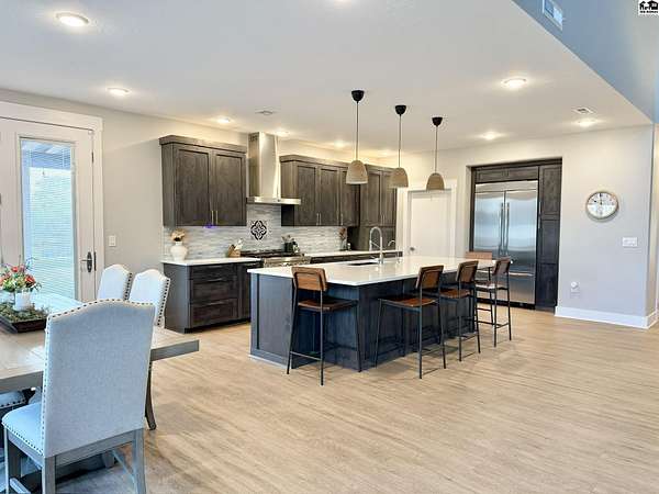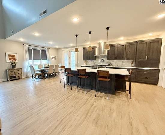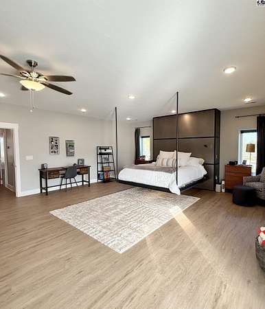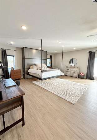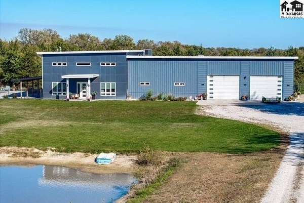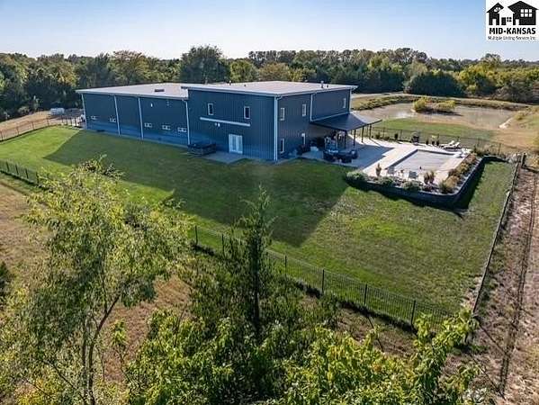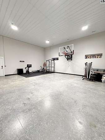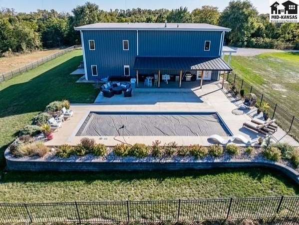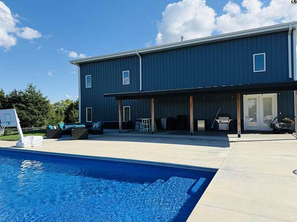 This one-of-a-kind custom-built modern home offers 6,209 sq ft of living space on 9.3 acres with convenient blacktop access. Built with ICF (Insulated Concrete Foam) construction, the home is incredibly durable-rated to withstand 250 mph winds and 4-hour fire exposure. The property includes a heated in-ground saltwater pool, 1/2 court indoor basketball court, private pond for recreation, plus 1,320 sq ft shop with 12' door for RV storage or a place for all your toys. Inside, the main level features wood floors with in-floor radiant heat, a spacious open-concept living area, and a chef's kitchen equipped with commercial appliances, a 10' island, and a walk-in pantry with prep space. The main level includes a massive 20'x30' master suite with a private patio and hot tub, a suspended king-size bed, steam shower, and a large walk-in closet with its own laundry & safe room. Upstairs offers four large bedrooms-two with private baths and walk-in closets-an additional full bath, laundry room, and a family room with a second kitchen, ideal for multi-generational living or guest space. Additional highlights include a boiler system, tankless water heater with instant hot water recirculation, oversized 1,500-gallon septic, two water wells, 200-amp service with automatic transfer switch pre-wired for a generator, underground sprinklers, a 15-camera security system, monitored alarm, hidden security room, and roof hatch for a future rooftop deck. Do not miss out on this one!!