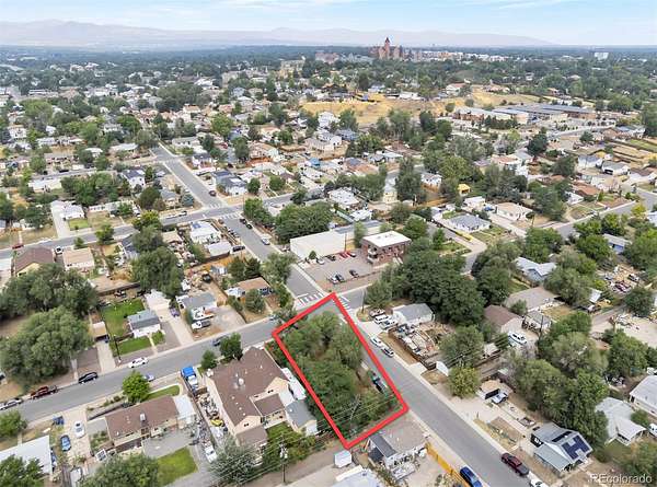 Est $1,600/moSeveral beautiul, mature trees highlight this large corner lot. Conventiently located just off Hampden Ave./Hwy 285, between Federal and Platte River Drive and Santa Fe. Great, quick access to light rail, downtown Denver, downtown Littleton and the mountains via Hwy 285. The lot has a paid water tap. You may build a single family residence and an ADU on this lot, per the City of Sheridan planning and zoning department. RES-SFLL (Single Family Large Lot) zoning. THE CITY IS OPEN TO LOOKING AT ALTERNATIVE USE PLANS!