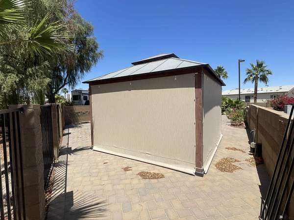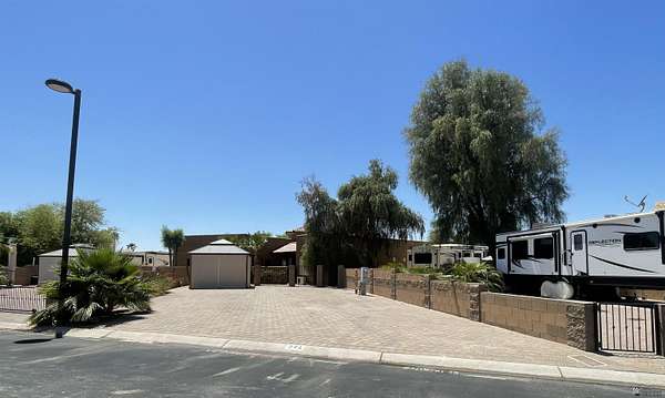 Est $601/moImproved move-on ready RV site is located in 55+ gated community offering seasonal classes, events & concerts. Nestled in on the south side of resort, this lot is fully paved, fenced on 3 sides and includes a gazebo with sun shades on all sides; nicely landscaped. All utilities onsite. Pet friendly community with 2 fenced dog parks and walking trail around perimeter of resort. Onsite cafe and bar. The possibilities are endless....build an RV support building, garage, outdoor kitchen/bbq area or even a site built villa; subject to architectural committee approval. Your next winter escape awaits you!