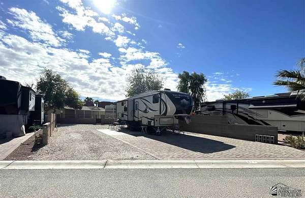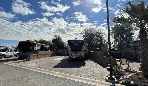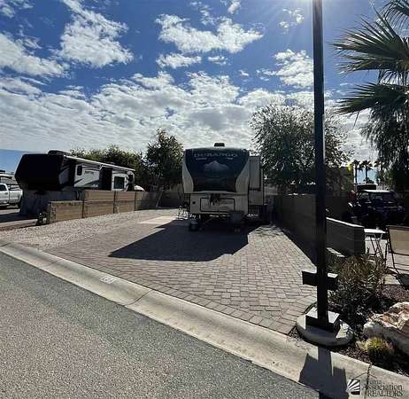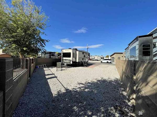 Est $476/moThis North facing move-on ready RV lot is ready for your Winter escape offering full RV hook-ups. Back and sides fenced with single rod iron gate access to rear PAL easement area. Conduit ran for additional future power and water. Paved and concrete patio. Property is located in 55+ gated community with 24/7 onsite security. Centrally located clubhouse offering amenities galore. Planned classes, events & concerts during the winter. Onsite cafe and cabana. Submit your offer today!