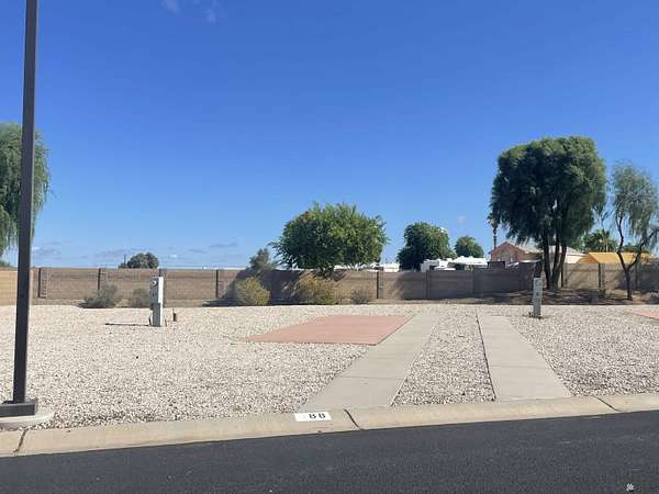 Est $670/moLarge perimeter lot located in 55+ gated community available now! This lot is currently set up for RV access with full hook-ups; minimum improvement requirement has been met (concrete slabs for RV tires to park on). Common area directly behind you. Utilize this lot as-is or build an RV support building, add a gazebo or two or build your very own one or two bedroom villa with or without garage; subject to Arch. Committee Approval. Very active community with centrally located clubhouse offering seasonal planned events, classes, concerts and so much more!