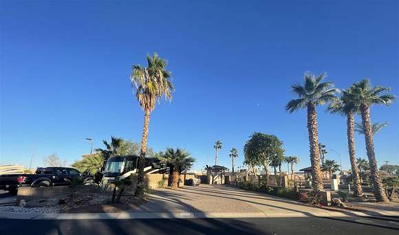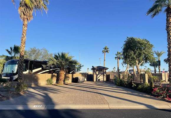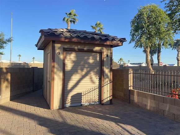 Est $726/moBeautifully landscaped premium corner lot with easy access to walking trail & short distance to centrally located clubhouse area. Lot is move-on ready for RV offering full hook-ups, concrete/paver pad, block wall & 8'x10' storage shed with roll-up door & side man door; Shed has power. Option to site-build; subject to Arch. Committee approval. Seasonal planned events, classes, concerts & cafe/cabana. Located in 55+ gated community with 24/7 onsite security.