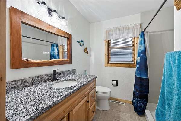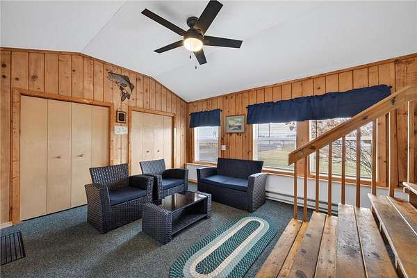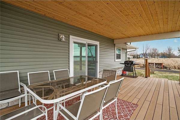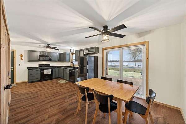 Rare opportunity to purchase a fully furnished, turnkey lake home on Fish Lake—move in and start enjoying lake life immediately. Set on approximately 3 acres with an incredible 400 feet of shoreline, this property offers unmatched privacy and a true connection to nature—enjoy daily sightings of eagles, the peaceful sounds of loons and cranes, and fishing right off your own dock. Located just 43 miles from the Twin Cities, this is the perfect quick retreat or full-time residence with a manageable commute. This 3-bedroom, 1-bath home features convenient one-level living with all facilities on the main level. Thoughtfully updated throughout, including a completely remodeled kitchen (2024) with new cabinetry, granite countertops, updated laminate flooring, newer appliances, and updated patio doors with built-in blinds. The bathroom was fully renovated in 2025 with granite countertops, new cabinetry, and an oversized walk-in shower. Recent exterior improvements include new siding, roofing, gutters, downspouts, and added gutter guards/mesh (2024), along with a new asphalt driveway (2025). A maintenance-free Trex deck (2024) and covered, shaded patio creates the perfect space to relax and take in the lake views. Perennial landscaping surrounds the home, along with a firepit area in the front yard for evening enjoyment. Additional highlights include a finished 4-season porch (2025), an owned water softener and propane tank (2023), and an approximately 700 sq ft, 3-car insulated and finished garage with a separately heated finished area ideal for a home office, hobby space, studio, or workshop. Crawl space features a concrete floor and heat; the sump pump was replaced in 2024. Furniture and décor can remain; patio furniture and grill are included. Located near a public beach and park at the end of the road—this property truly has it all.