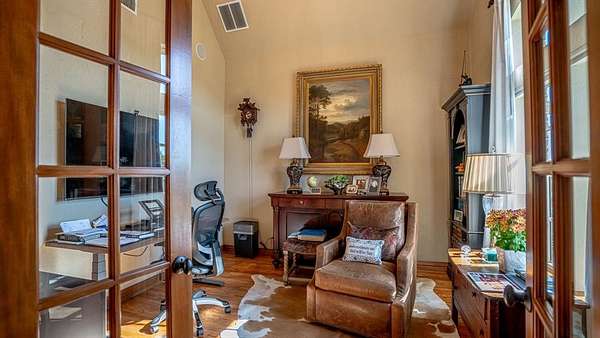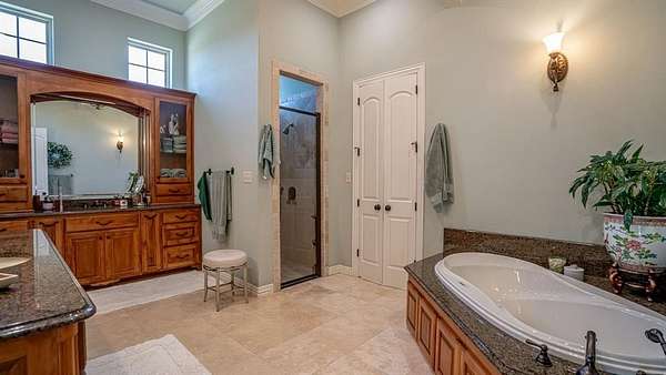 Discover an impressive custom estate nestled on 2 acres at the end of a quiet cul-de-sac in the prestigious, gated lakeside community of Grand Harbor. Every detail of this home has been meticulously crafted, from the rich oak wood and polished travertine floors to the exquisite maple cabinetry and refined trim work. A stunning stone fireplace anchors the living area, which flows into a first-class kitchen featuring double ovens, a warming drawer, 6-burner gas cooktop with pot filler, island with sink, butlers pantry, and a new wall of appliance cabinetry. The second level includes two staircases going to two additional bedrooms with baths and two additional living areas with wet bar. The office is located at the first landing of the stairs with an awesome view of the lake. Unparalleled landscaping enhances the beauty of the home, while a resort-style pool invites you to relax or entertain. When cooler, gather around the outdoor fireplace or fire pit and enjoy watching wildlife. This one has it all: luxury, tranquility and comfort. Expect the BEST of Better Homes and Gardens merged with the BEST of Southern Living. You will not be disappointed.